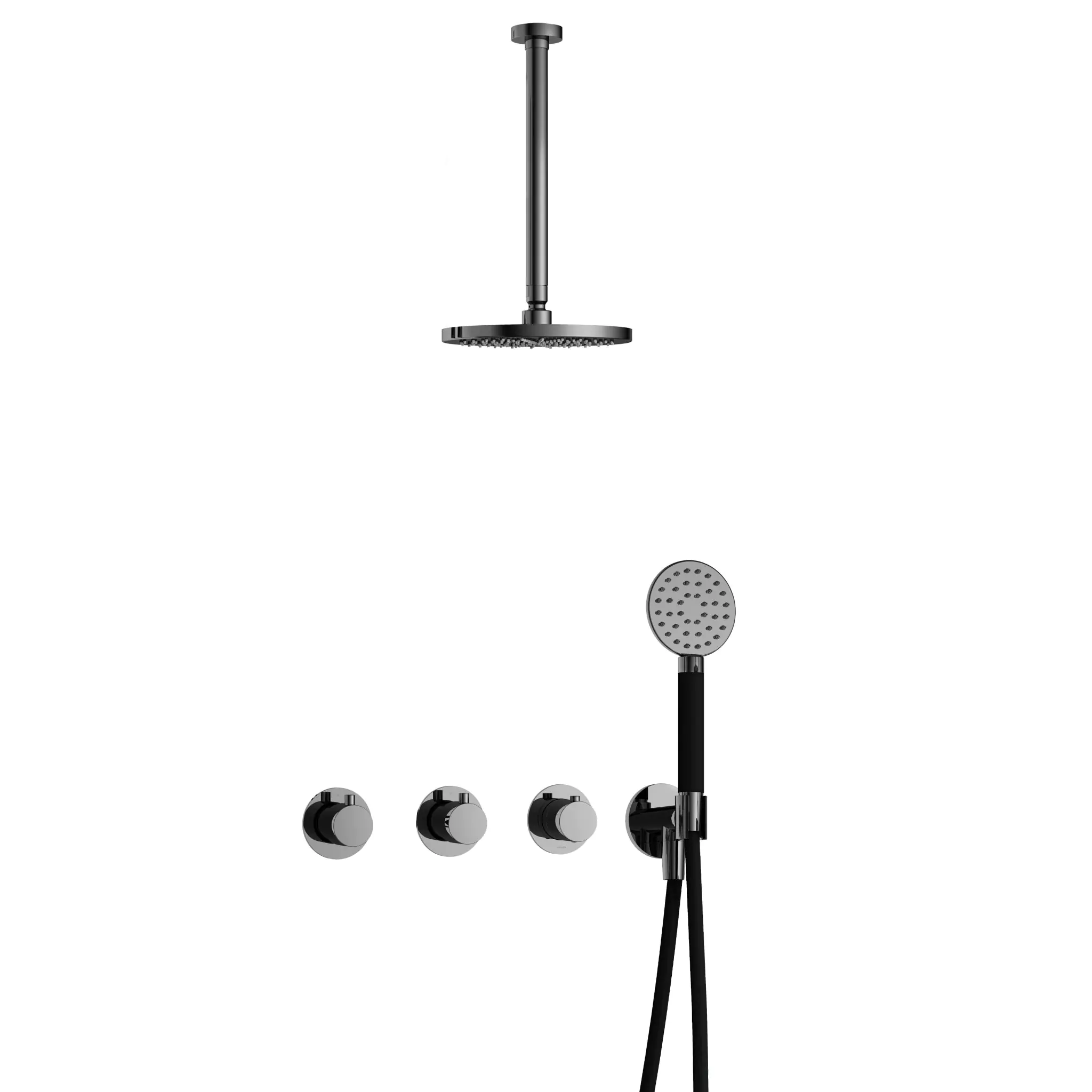 Hotbath Cobber Inbouw Regendoucheset Met Thermostaatkraan, 2 Stopkranen, Plafondbuis 30cm, Hoofddouche 20cm En 3-Standen Handdouche Zwart Chroom