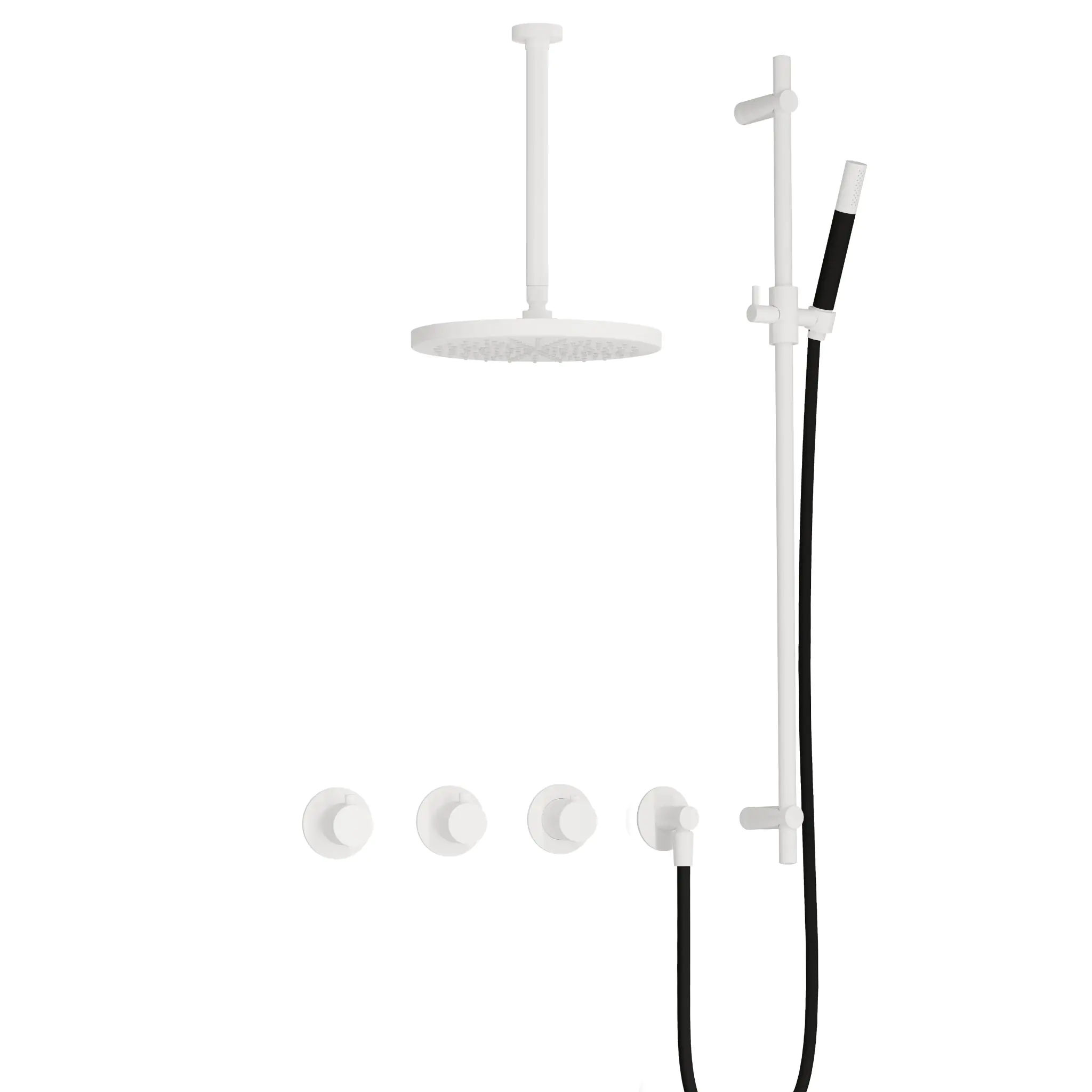 Hotbath Cobber Inbouw Regendoucheset Met Thermostaatkraan, 2 Stopkranen, Plafondbuis 30cm, Hoofddouche 30cm, Staafhanddouche En Glijstang Mat Wit