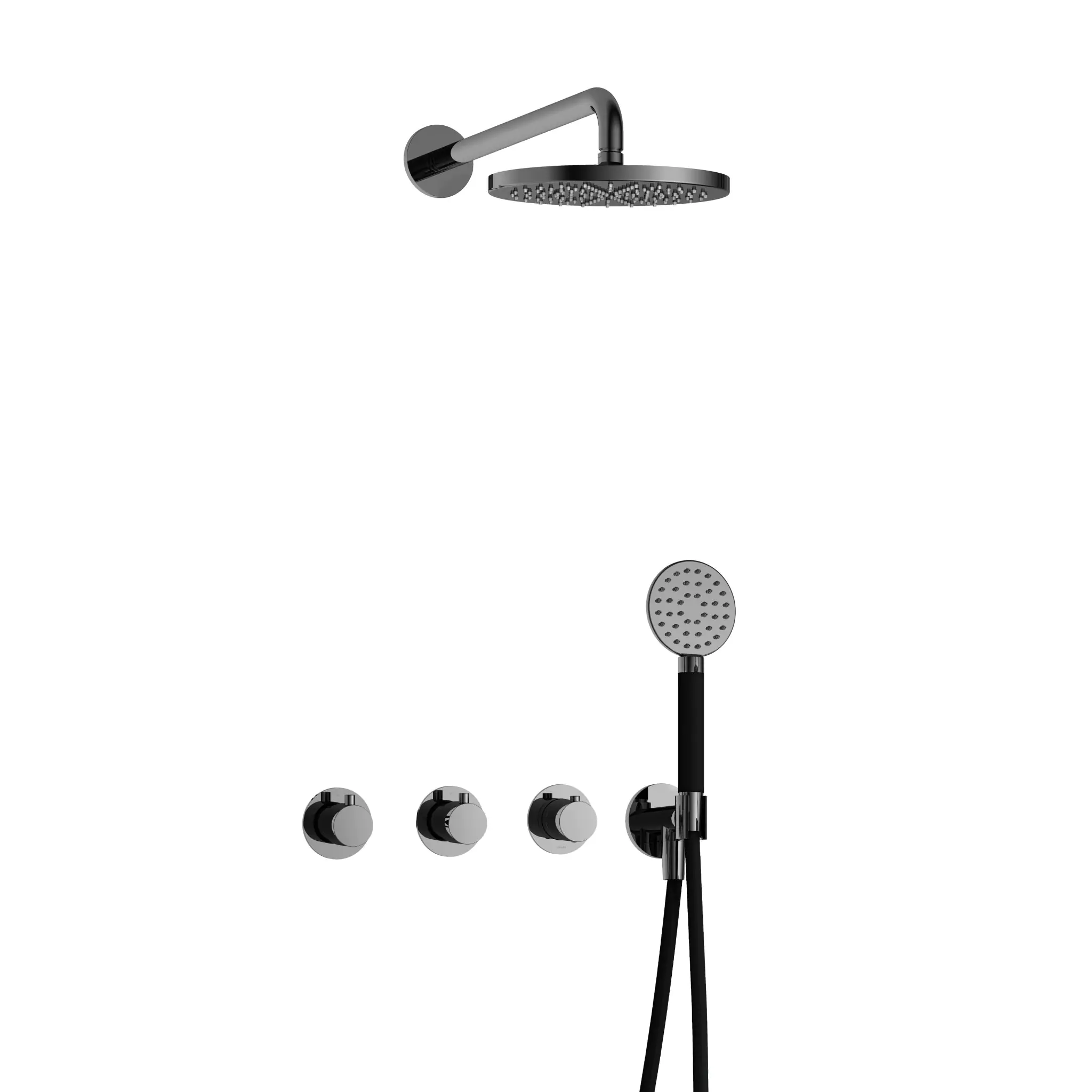 Hotbath Cobber Inbouw Regendoucheset Met Thermostaatkraan, 2 Stopkranen, Wandarm, Hoofddouche 20cm En 3-Standen Handdouche Zwart Chroom