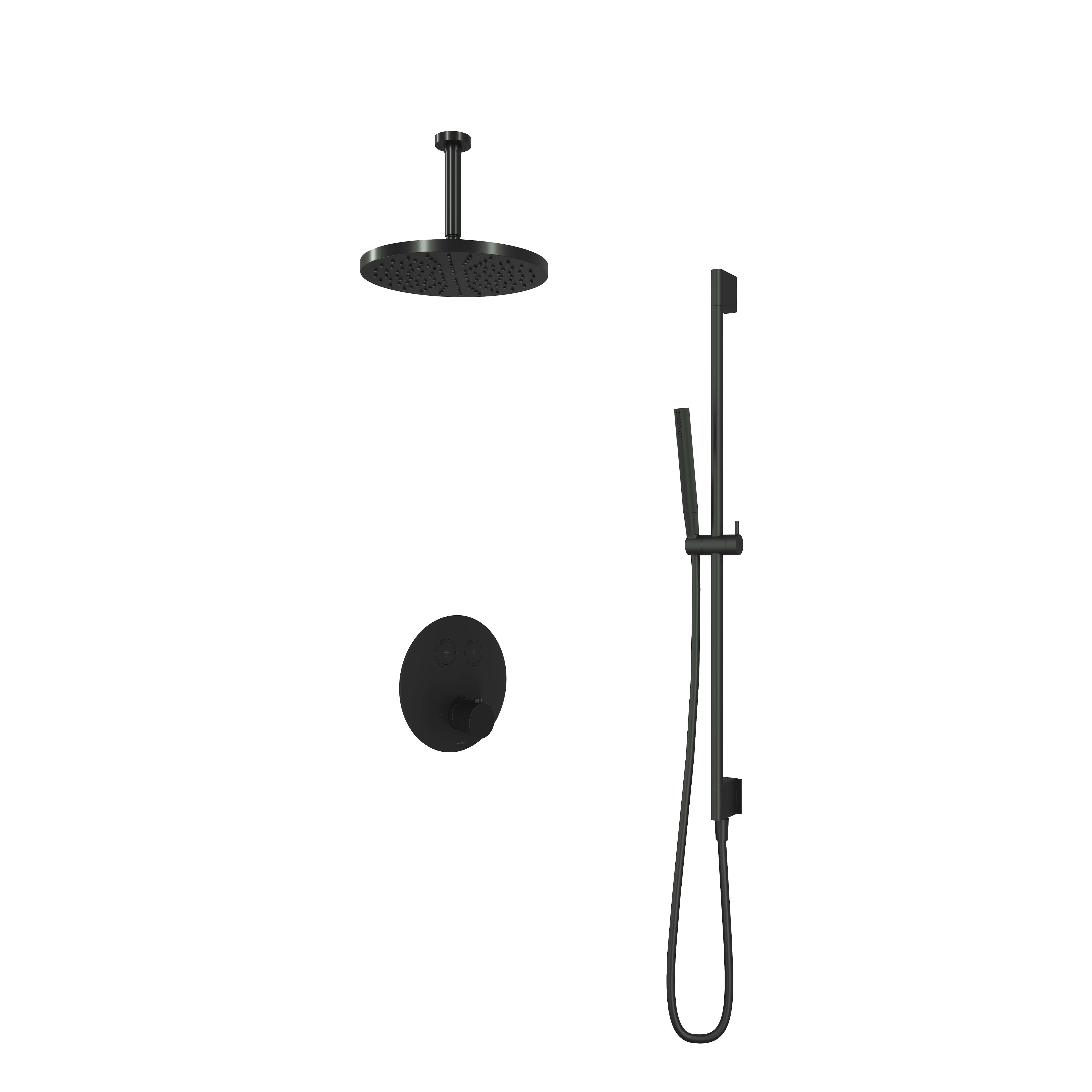 Deze complete regendoucheset van Hotbath uit de serie Cobber kunt u precies samenstellen zoals u dat wenst. Deze set is kenmerkend voor de ingebouwde thermostaat met 2 pushbuttons. Iedere set wordt geleverd met de gehele inbouwbox en externe schakelaars. De set is verkrijgbaar in verschillende kleuren. Deze set is voorzien van een plafondbuis 15 cm, hoofddouche 30 cm en een glijstang met staafhanddouche. Let op: De hoofddouches met een diameter 20 cm hebben minimaal een CW3 ketel nodig om dit systeem zo goed mogelijk te laten werken. Voor hoofddouches met een diameter van 25 cm of groter, geldt een CW4 systeem of hoger.