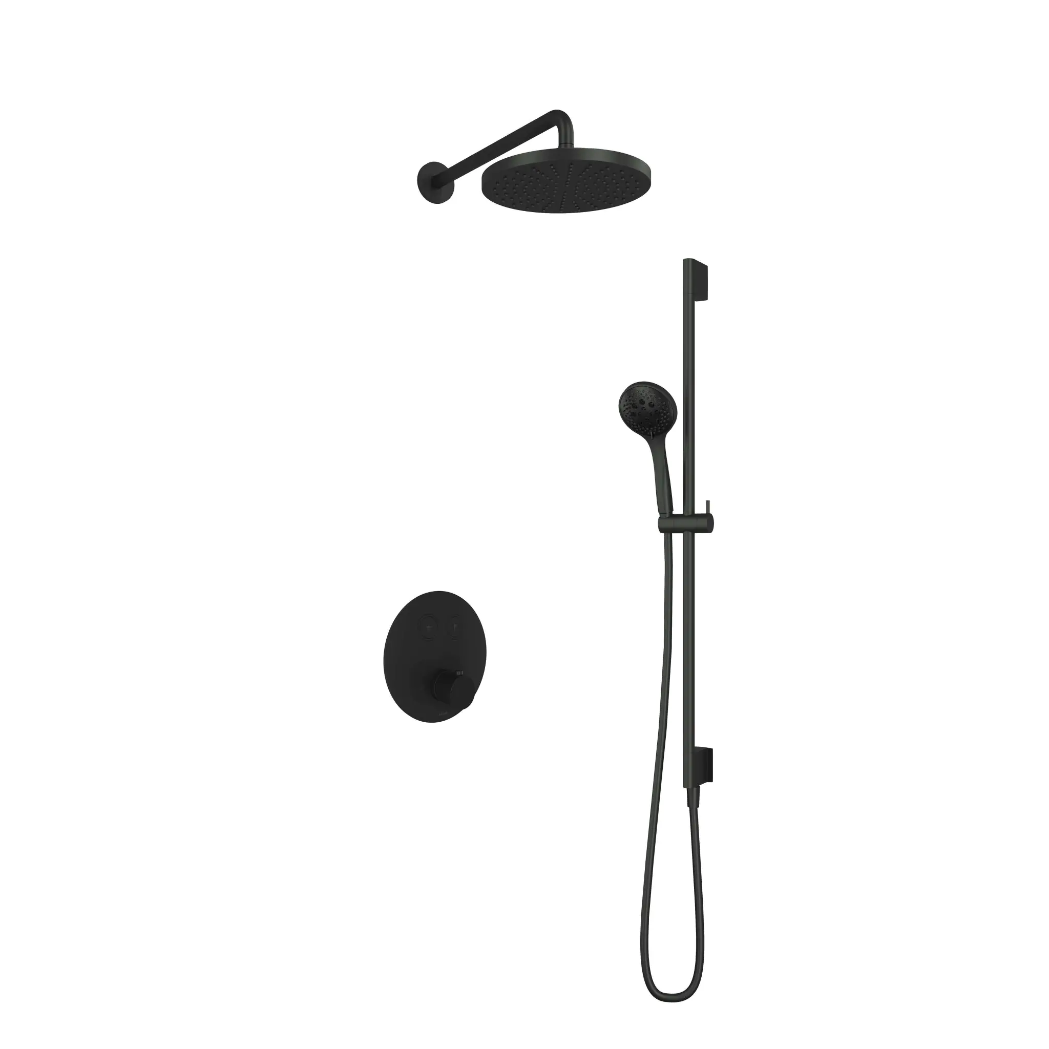 Hotbath Cobber Inbouw Regendoucheset Thermostaatkraan Met 2 Pushbuttons Rond, Wandarm, Hoofddouche 30cm, 3-Standen Handdouche En Glijstang Mat Zwart