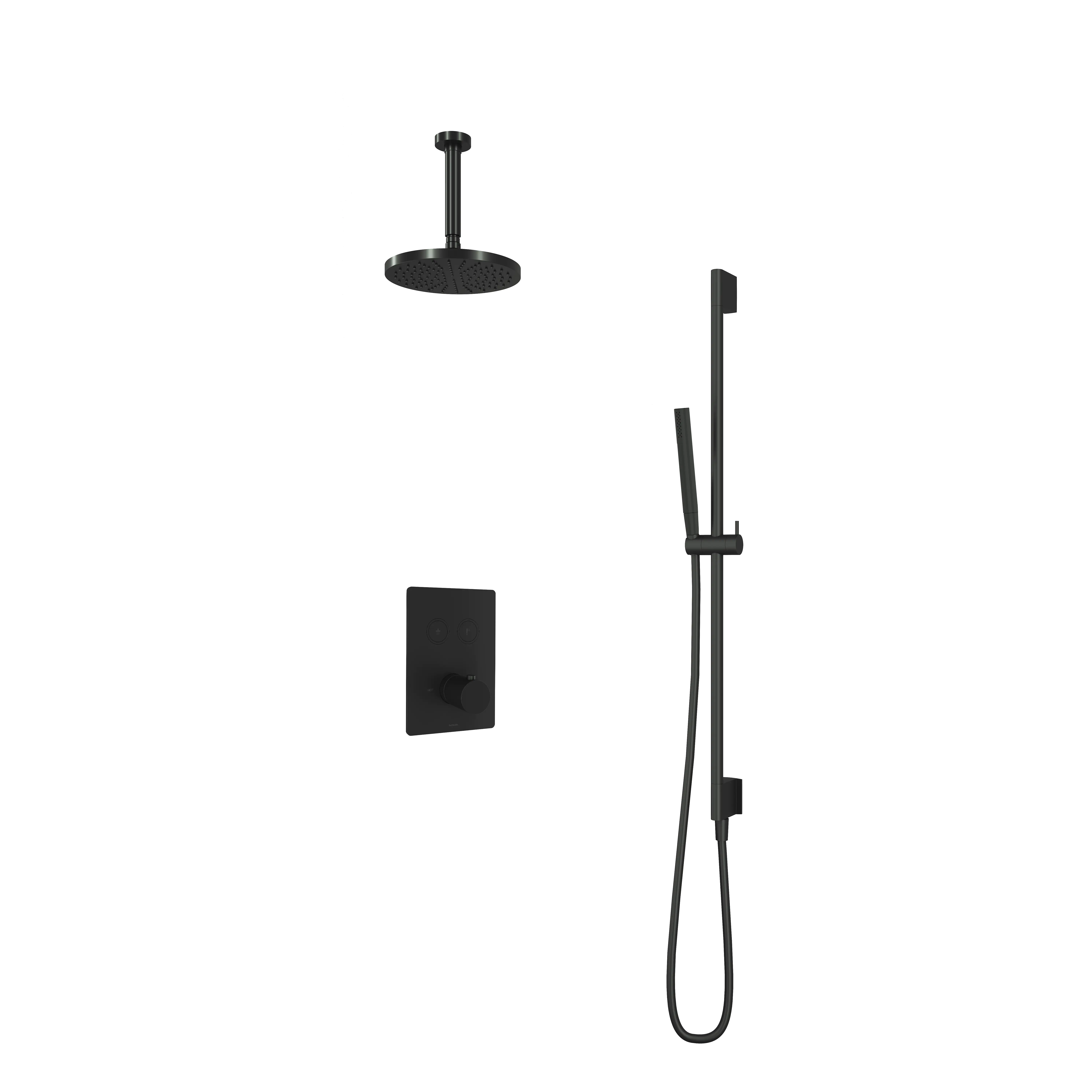 Deze complete regendoucheset van Hotbath uit de serie Cobber kunt u precies samenstellen zoals u dat wenst. Deze set is kenmerkend voor de ingebouwde thermostaat met 2 pushbuttons. Iedere set wordt geleverd met de gehele inbouwbox en externe schakelaars. De set is verkrijgbaar in verschillende kleuren. Deze set is voorzien van een plafondbuis 15 cm, hoofddouche 20 cm en een glijstang met staafhanddouche. Let op: De hoofddouches met een diameter 20 cm hebben minimaal een CW3 ketel nodig om dit systeem zo goed mogelijk te laten werken. Voor hoofddouches met een diameter van 25 cm of groter, geldt een CW4 systeem of hoger.