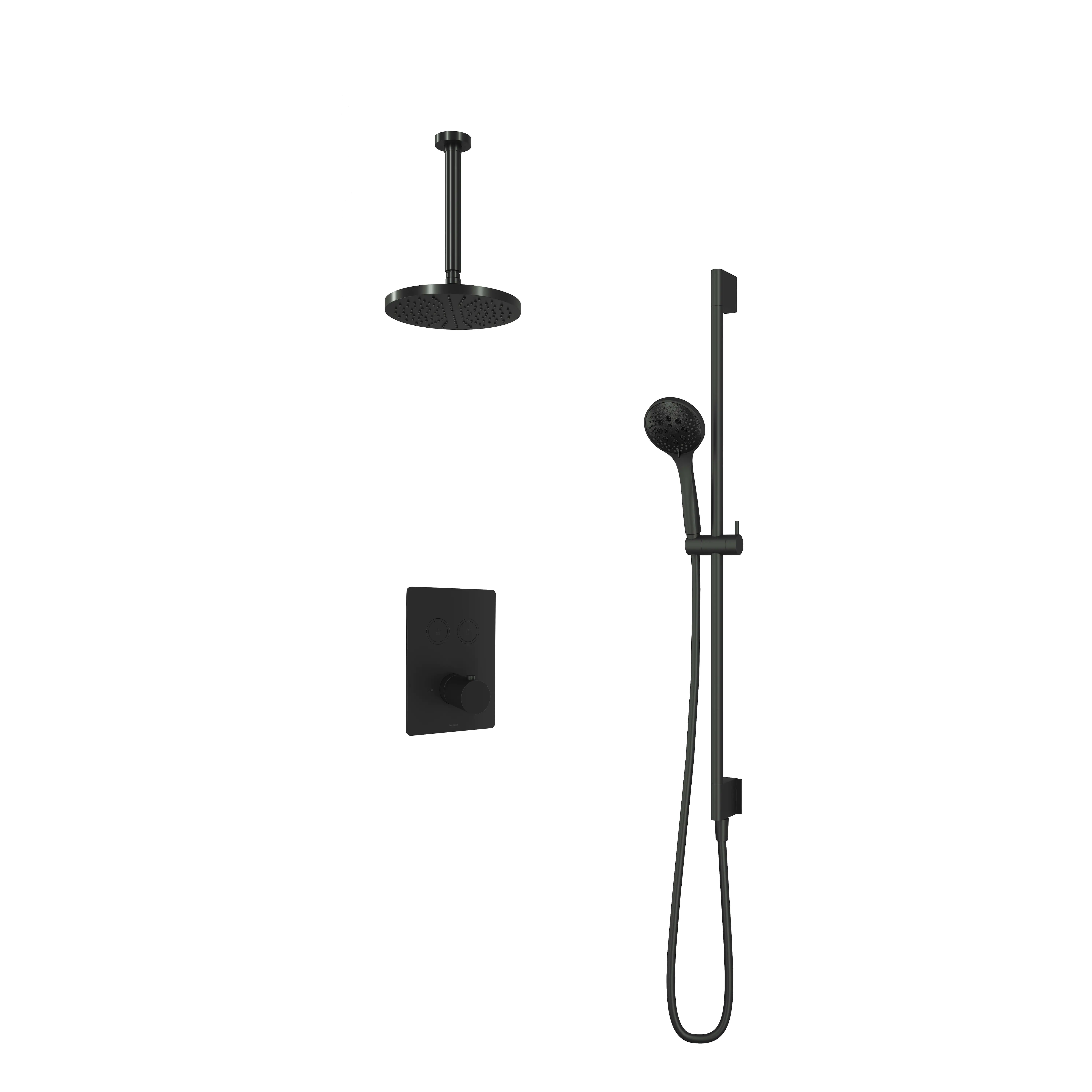 Deze complete regendoucheset van Hotbath uit de serie Cobber kunt u precies samenstellen zoals u dat wenst. Deze set is kenmerkend voor de ingebouwde thermostaat met 2 pushbuttons. Iedere set wordt geleverd met de gehele inbouwbox en externe schakelaars. De set is verkrijgbaar in verschillende kleuren. Deze set is voorzien van een plafondbuis 30 cm, hoofddouche 20 cm en een glijstang met 3 standen handdouche. Let op: De hoofddouches met een diameter 20 cm hebben minimaal een CW3 ketel nodig om dit systeem zo goed mogelijk te laten werken. Voor hoofddouches met een diameter van 25 cm of groter, geldt een CW4 systeem of hoger.
