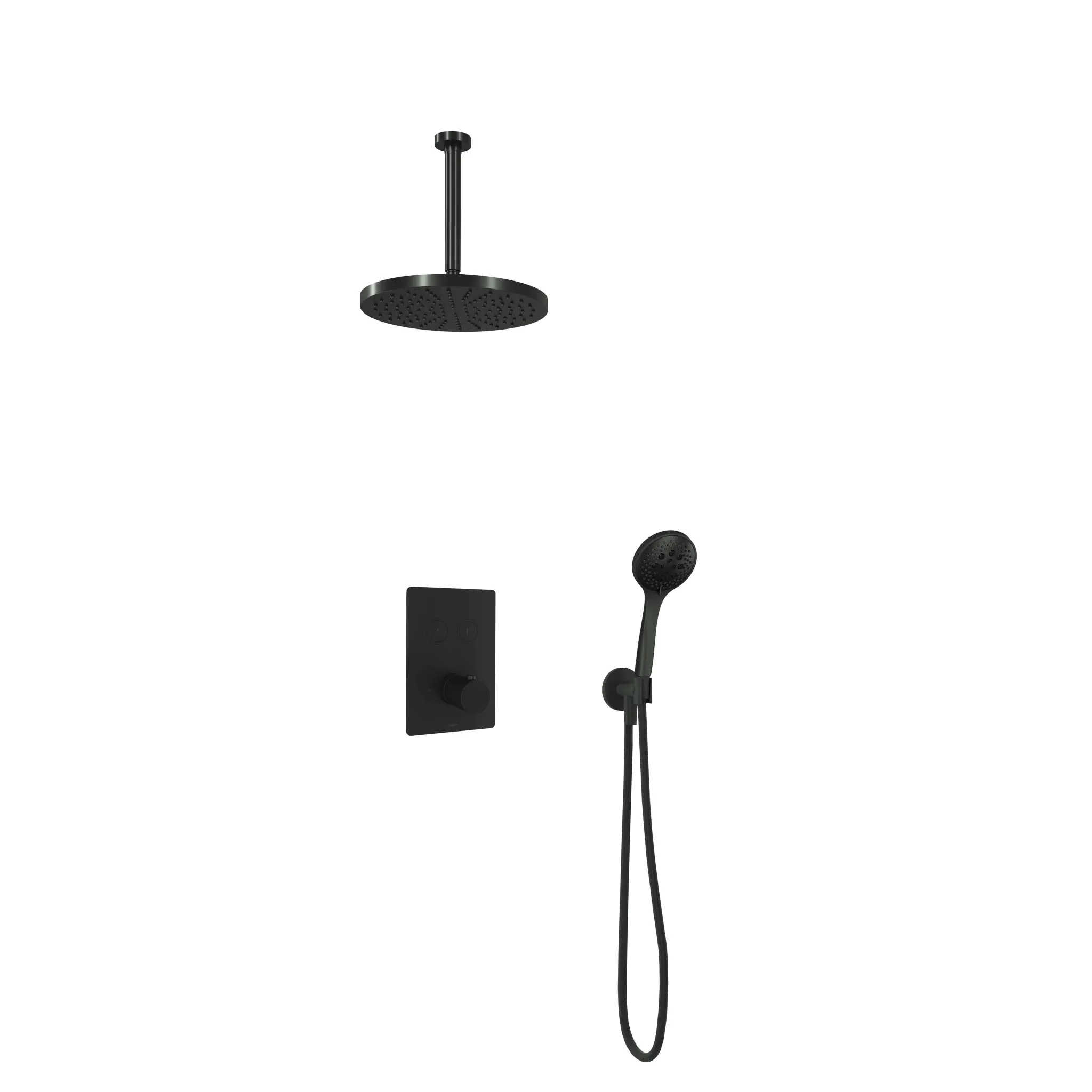Hotbath Cobber Inbouw Regendoucheset Thermostaatkraan Met 2 Pushbuttons Vierkant, Plafondbuis 30cm, Hoofddouche 30cm En 3-Standen Handdouche Mat Zwart