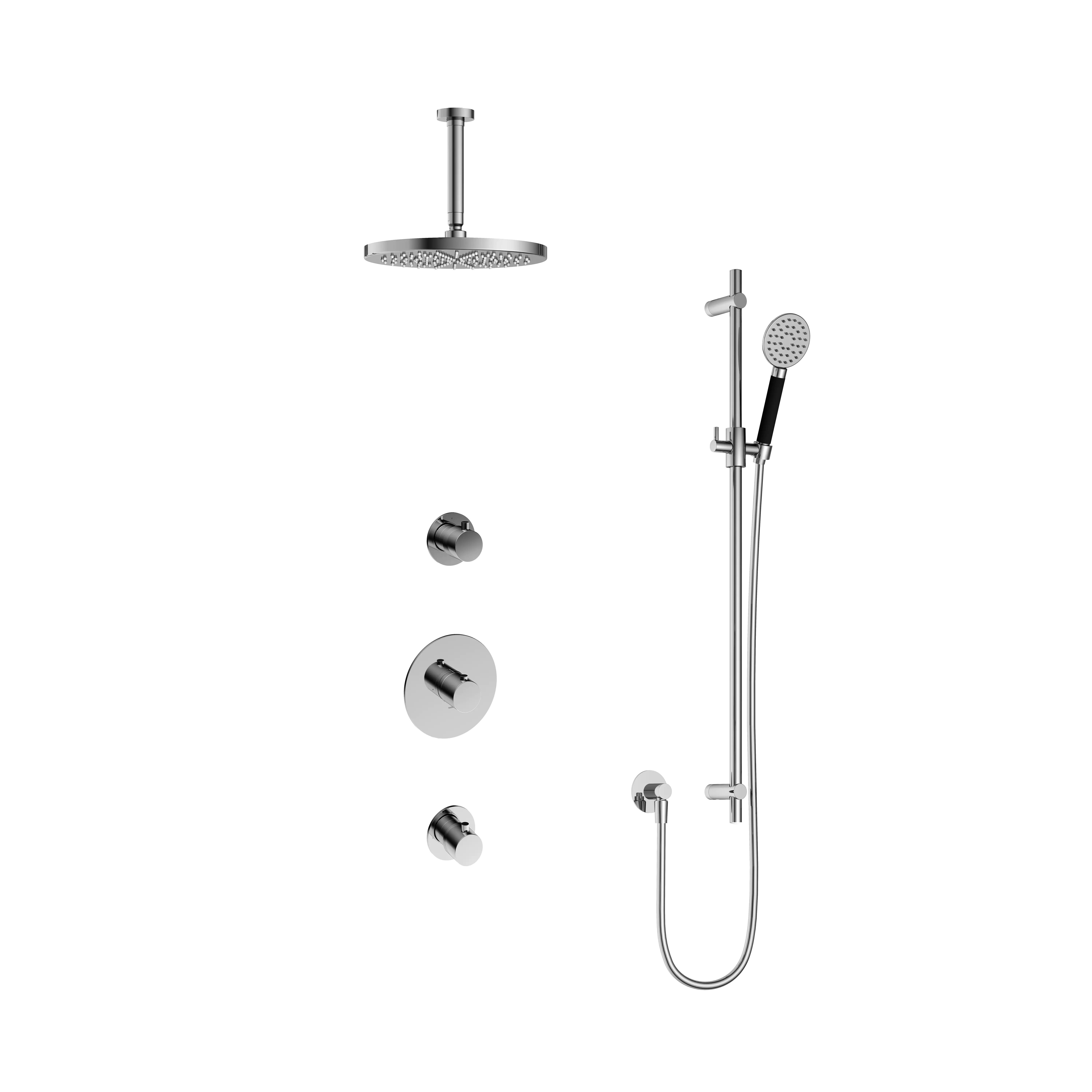 Deze complete regendoucheset van Hotbath uit de serie Cobber kunt u precies samenstellen zoals u dat wenst. Het afbouwdeel is voorzien van 3 draaiknoppen: een voor de watertemperatuur en een om te bepalen of het water uit de hoofddouche of uit de handdouche te laten stromen.Iedere set wordt geleverd met de gehele inbouwbox en externe schakelaars. De set is verkrijgbaar in verschillende kleuren. Deze set is voorzien van een plafondbuis 15 cm, hoofddouche 30 cm en een glijstang met 3 standen handdouche. Let op: De hoofddouches met een diameter 20 cm hebben minimaal een CW3 ketel nodig om dit systeem zo goed mogelijk te laten werken. Voor hoofddouches met een diameter van 25 cm of groter, geldt een CW4 systeem of hoger.