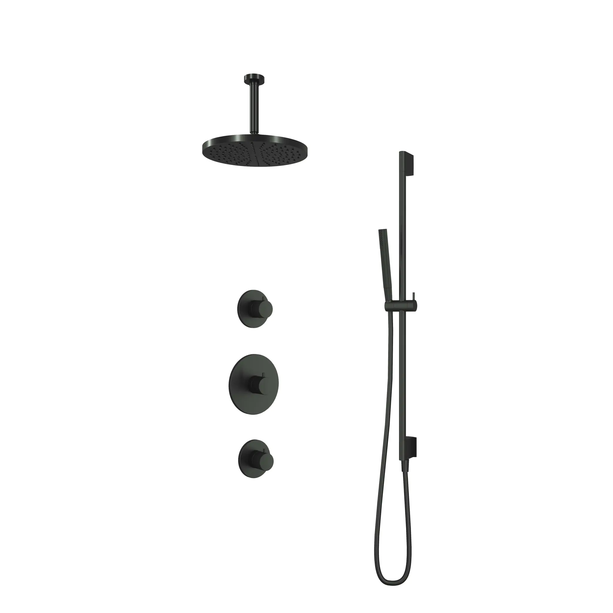 Deze complete regendoucheset van Hotbath uit de serie Cobber kunt u precies samenstellen zoals u dat wenst. Het afbouwdeel is voorzien van 3 draaiknoppen: een voor de watertemperatuur en een om te bepalen of het water uit de hoofddouche of uit de handdouche te laten stromen.Iedere set wordt geleverd met de gehele inbouwbox en externe schakelaars. De set is verkrijgbaar in verschillende kleuren. Deze set is voorzien van een plafondbuis 15 cm, hoofddouche 30 cm en een glijstang met staafhanddouche. Let op: De hoofddouches met een diameter 20 cm hebben minimaal een CW3 ketel nodig om dit systeem zo goed mogelijk te laten werken. Voor hoofddouches met een diameter van 25 cm of groter, geldt een CW4 systeem of hoger.