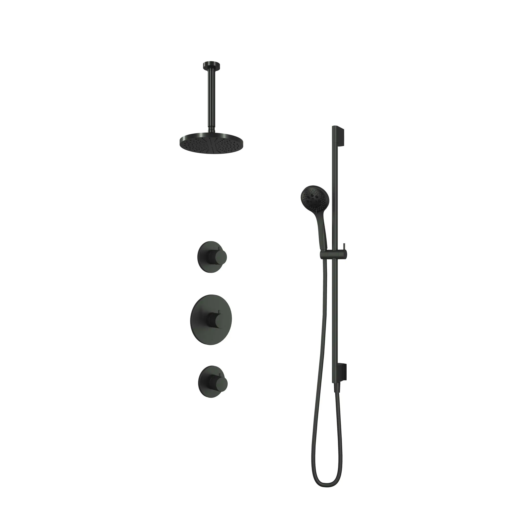 Deze complete regendoucheset van Hotbath uit de serie Cobber kunt u precies samenstellen zoals u dat wenst. Het afbouwdeel is voorzien van 3 draaiknoppen: een voor de watertemperatuur en een om te bepalen of het water uit de hoofddouche of uit de handdouche te laten stromen.Iedere set wordt geleverd met de gehele inbouwbox en externe schakelaars. De set is verkrijgbaar in verschillende kleuren. Deze set is voorzien van een plafondbuis 30 cm, hoofddouche 20 cm en een glijstang met 3 standen handdouche. Let op: De hoofddouches met een diameter 20 cm hebben minimaal een CW3 ketel nodig om dit systeem zo goed mogelijk te laten werken. Voor hoofddouches met een diameter van 25 cm of groter, geldt een CW4 systeem of hoger.