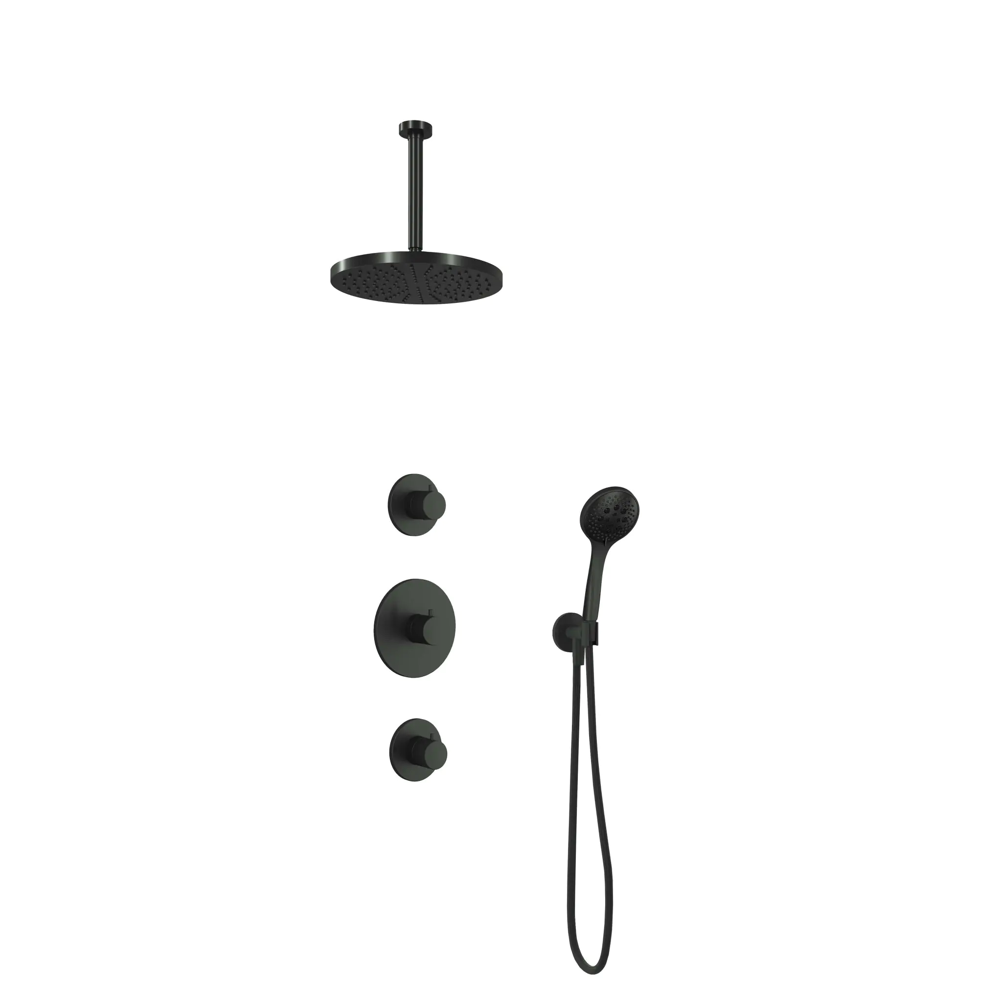 Deze complete regendoucheset van Hotbath uit de serie Cobber kunt u precies samenstellen zoals u dat wenst. Het afbouwdeel is voorzien van 3 draaiknoppen: een voor de watertemperatuur en een om te bepalen of het water uit de hoofddouche of uit de handdouche te laten stromen.Iedere set wordt geleverd met de gehele inbouwbox en externe schakelaars. De set is verkrijgbaar in verschillende kleuren. Deze set is voorzien van een plafondbuis 30 cm, hoofddouche 30 cm en een 3 standen handdouche. Let op: De hoofddouches met een diameter 20 cm hebben minimaal een CW3 ketel nodig om dit systeem zo goed mogelijk te laten werken. Voor hoofddouches met een diameter van 25 cm of groter, geldt een CW4 systeem of hoger.