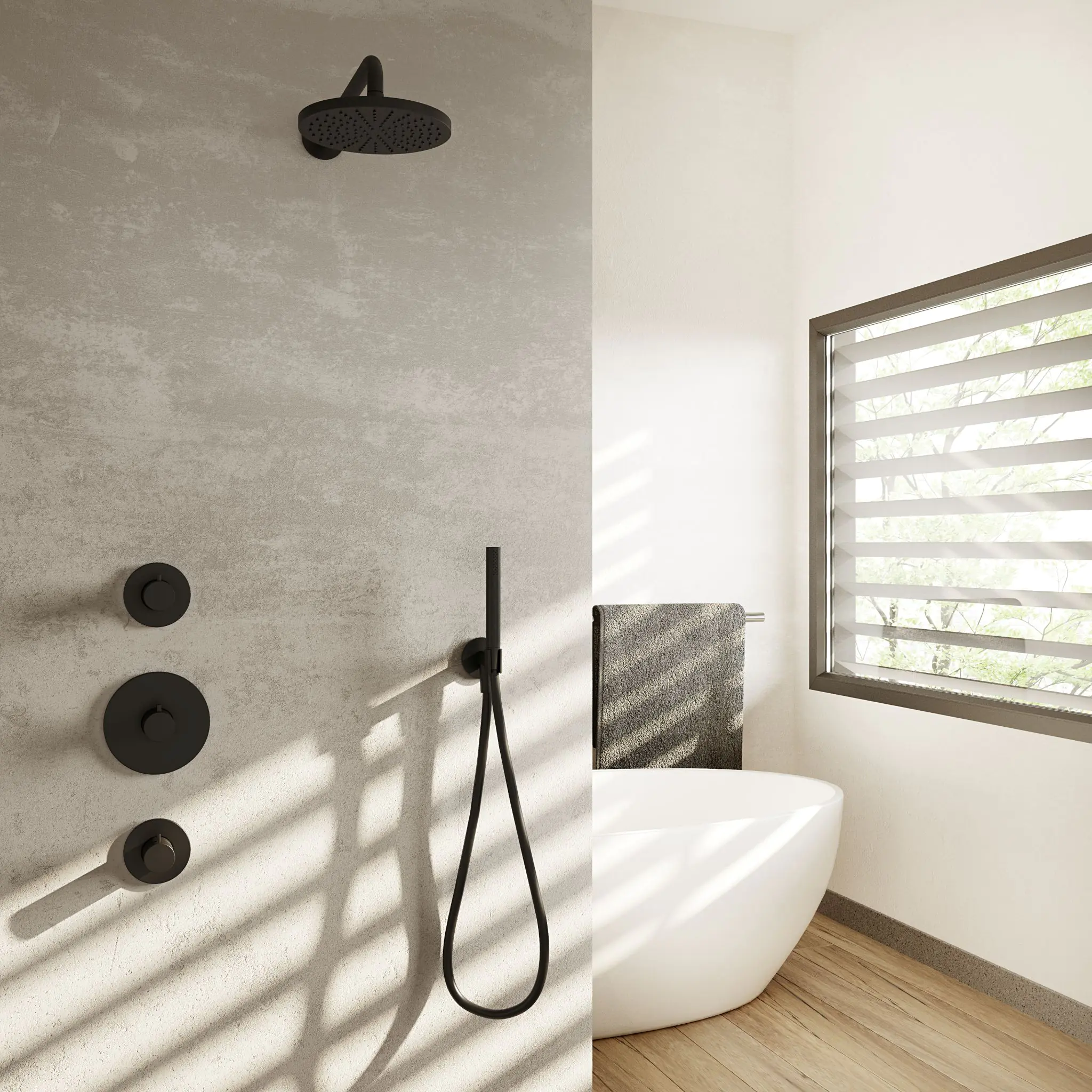 Hotbath Cobber Inbouw Regendoucheset Thermostaatkraan Met 2 Stopkranen, Wandarm, Hoofddouche 20cm En Staafhanddouche Mat Zwart