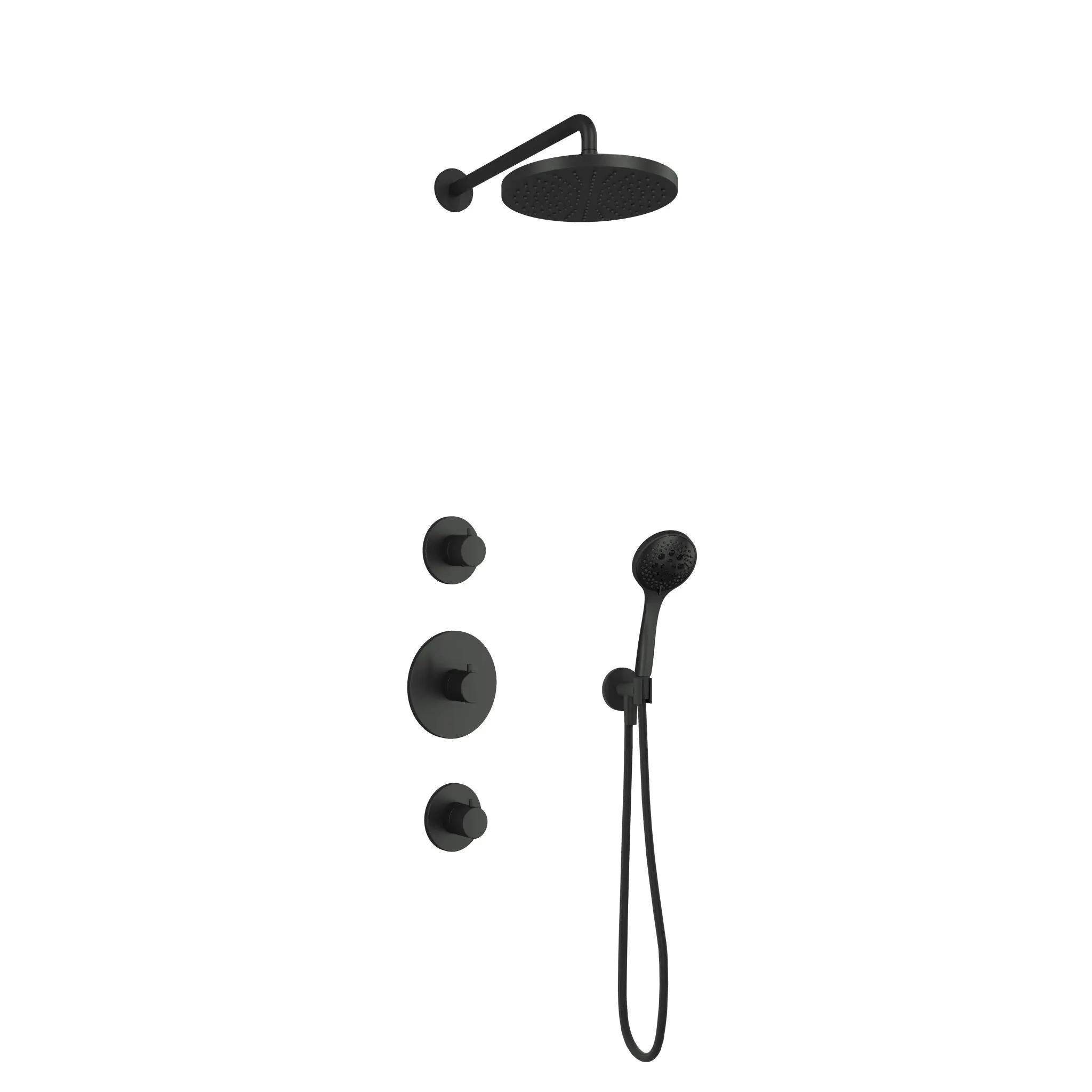 Hotbath Cobber Inbouw Regendoucheset Thermostaatkraan Met 2 Stopkranen, Wandarm, Hoofddouche 30cm En 3-Standen Handdouche Mat Zwart