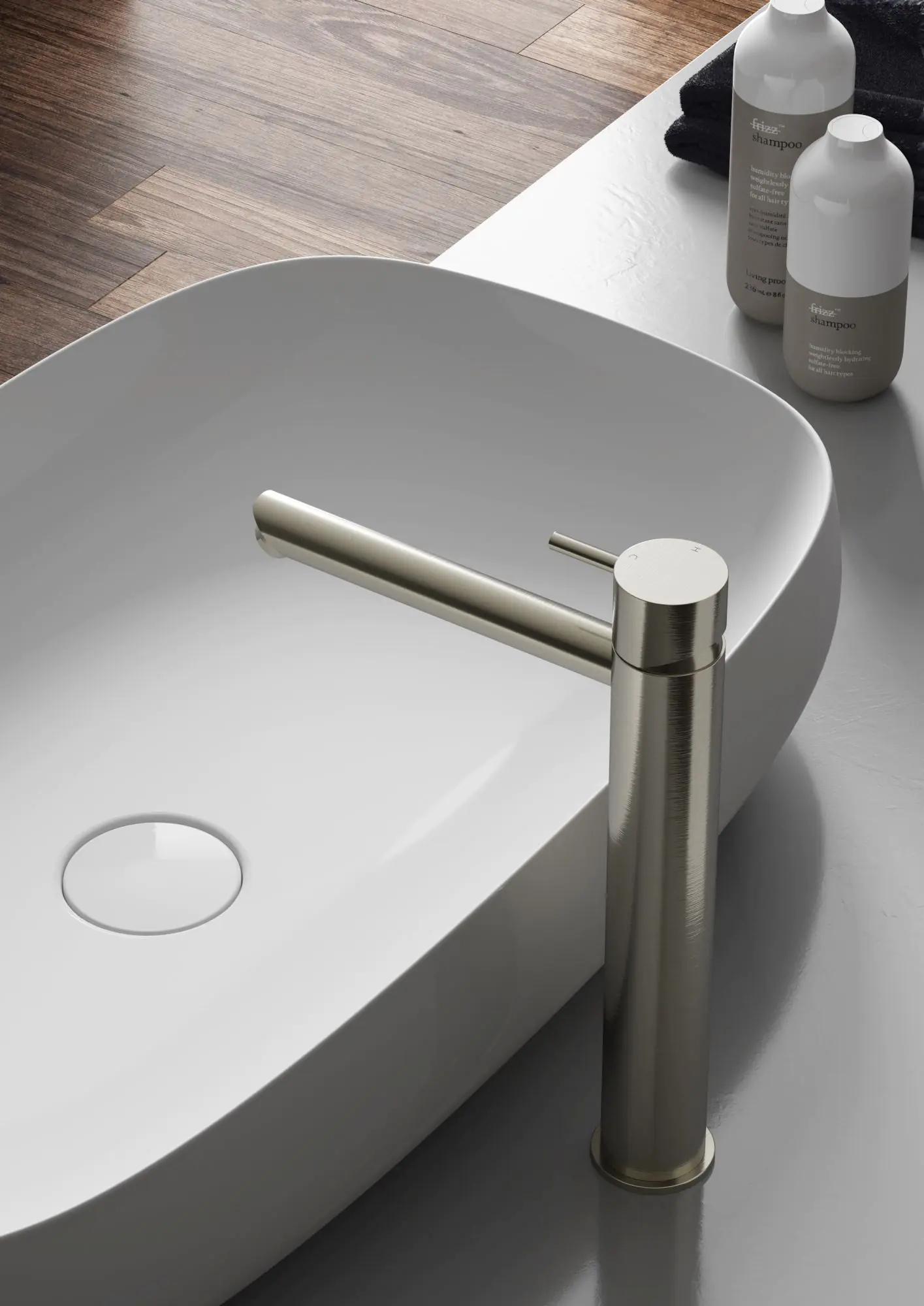 Hotbath Cobber Opbouw Hoge Wastafelmengkraan Met Rechte Uitloop Geborsteld Nikkel