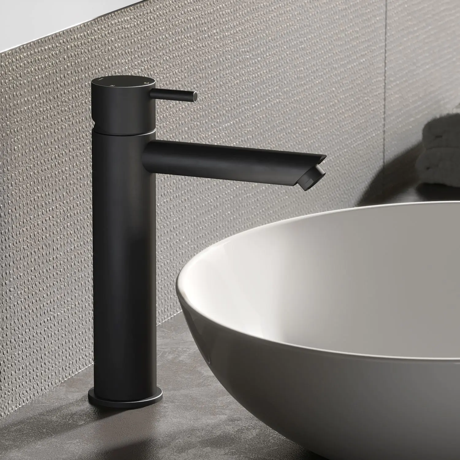 Hotbath Cobber Opbouw Middelhoge Wastafelmengkraan Met Rechte Uitloop Mat Zwart