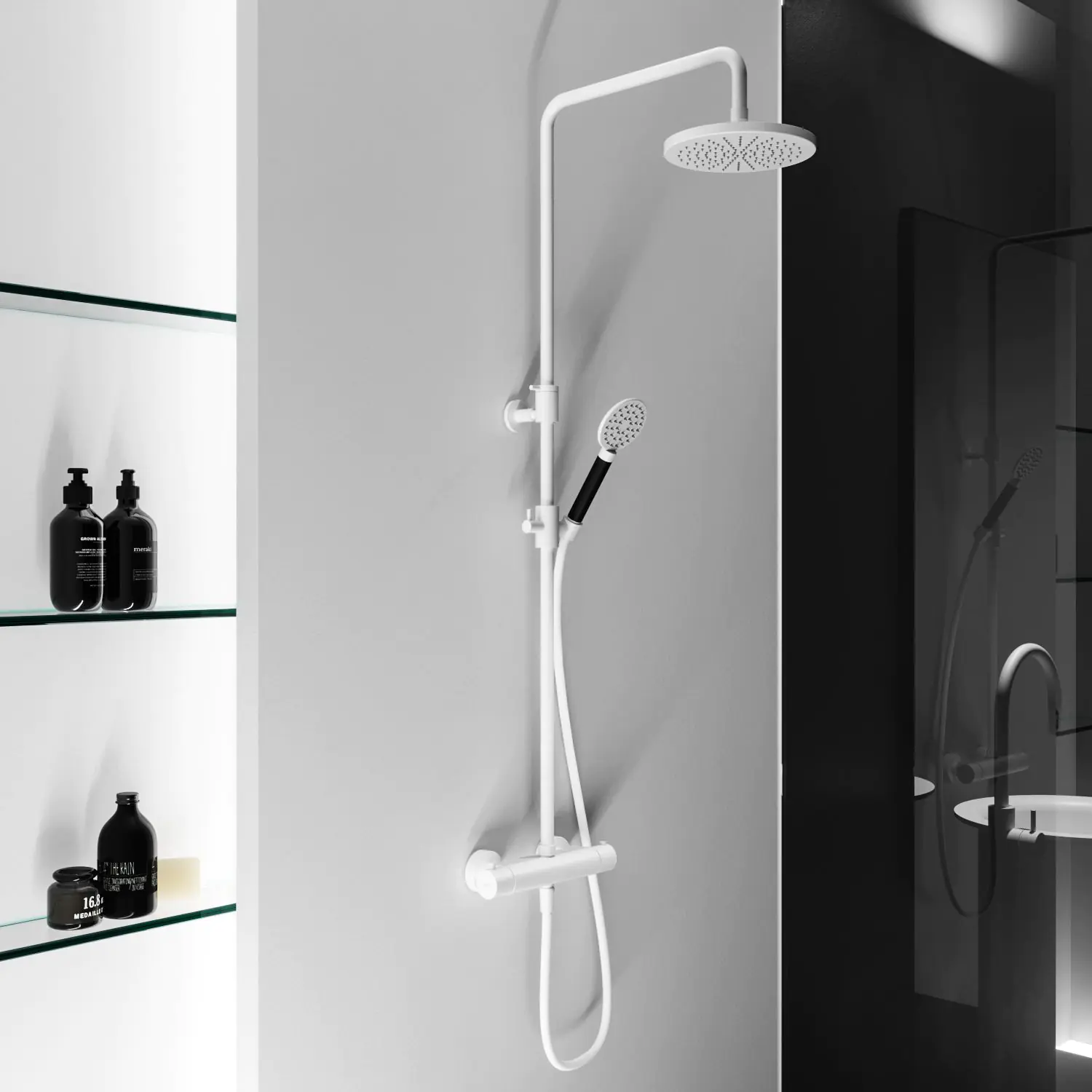 Deze complete regendoucheset van Hotbath Cobber kunt u precies samenstellen zoals u dat wenst. Iedere set wordt geleverd met de gehele kraan en schakelaars. De set is verkrijgbaar in verschillende kleuren. De ingebouwde temperatuurbegrenzer zorgt ervoor dat de watertemperatuur nooit warmer wordt dan 40°C. als u dat niet wilt. Dat maakt deze thermostaat betrouwbaar. De hoofddouche is te verstellen van minimaal 78,5 cm tot en met maximaal 135 cm hoogte. Hiermee kunt u voor uw zelf de meest comfortabele douche creëren. Deze configuratie bestaat uit: -Opbouw thermostaat -Hoofddouche met een diameter van 20 cm -Ronde Handdouche -Stortdouchestang