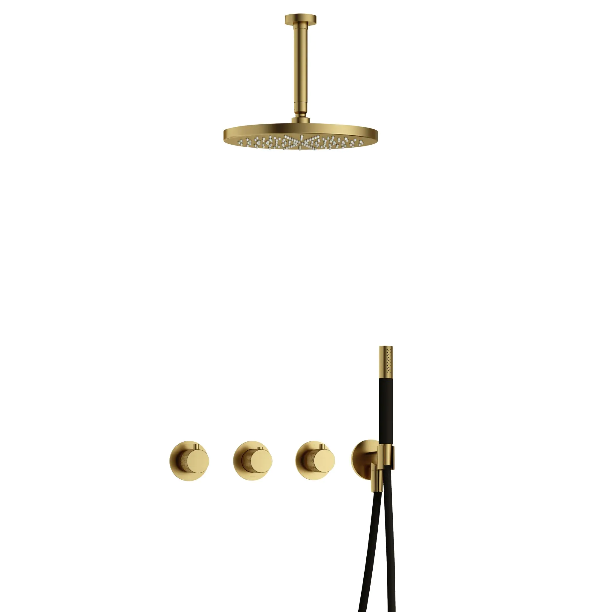Hotbath Cobber X Inbouw Regendoucheset Met 2 Stopkranen, Plafondbuis 15cm, Hoofddouche 30cm En Staafhanddouche Geborsteld Messing PVD