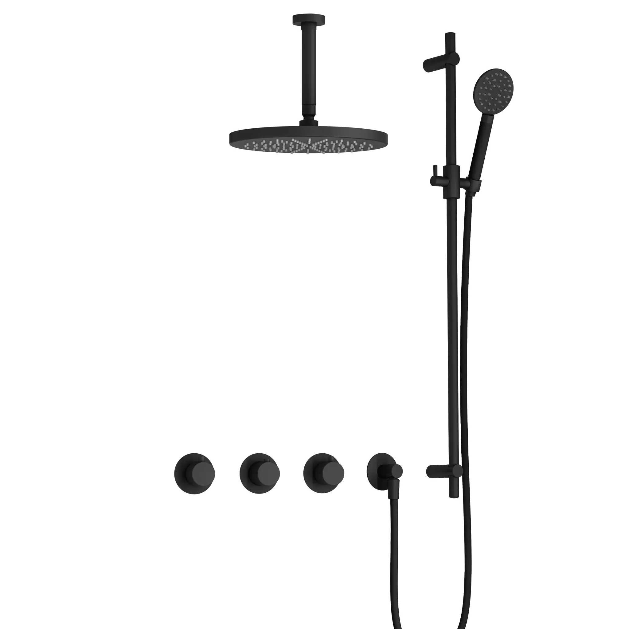 Hotbath Cobber X Inbouw Regendoucheset Met 2 Stopkranen, Plafondbuis 15cm, Hoofddouche 30cm, Ronde Handdouche En Glijstang Mat Zwart