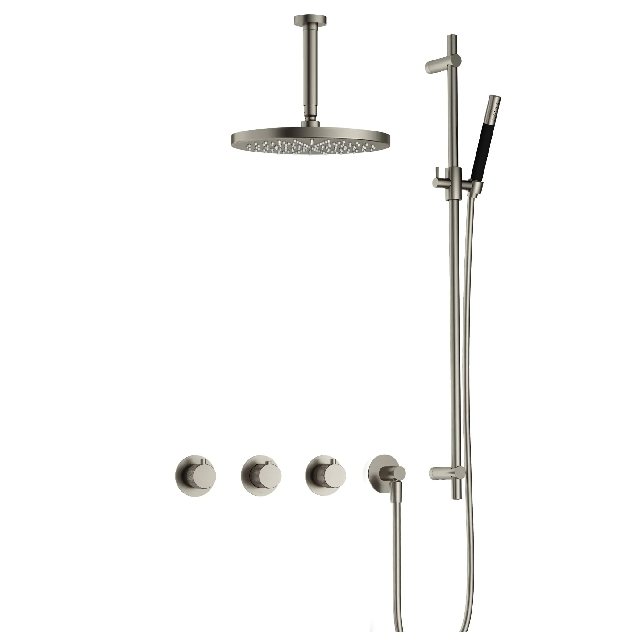 Hotbath Cobber X Inbouw Regendoucheset Met 2 Stopkranen, Plafondbuis 15cm, Hoofddouche 30cm, Staafhanddouche En Glijstang Geborsteld Nikkel