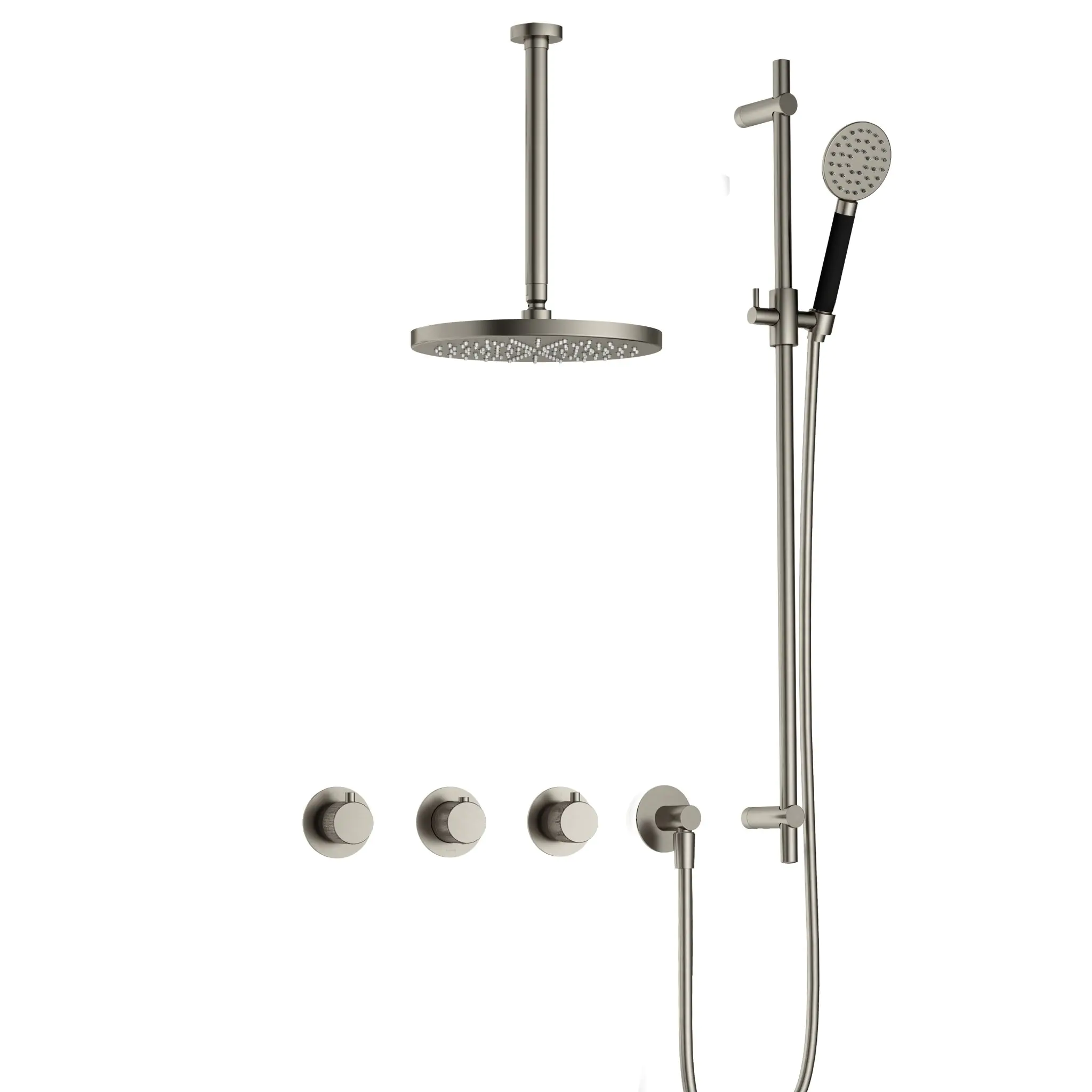 Hotbath Cobber X Inbouw Regendoucheset Met 2 Stopkranen, Plafondbuis 30cm, Hoofddouche 20cm, Ronde Handdouche En Glijstang Geborsteld Nikkel