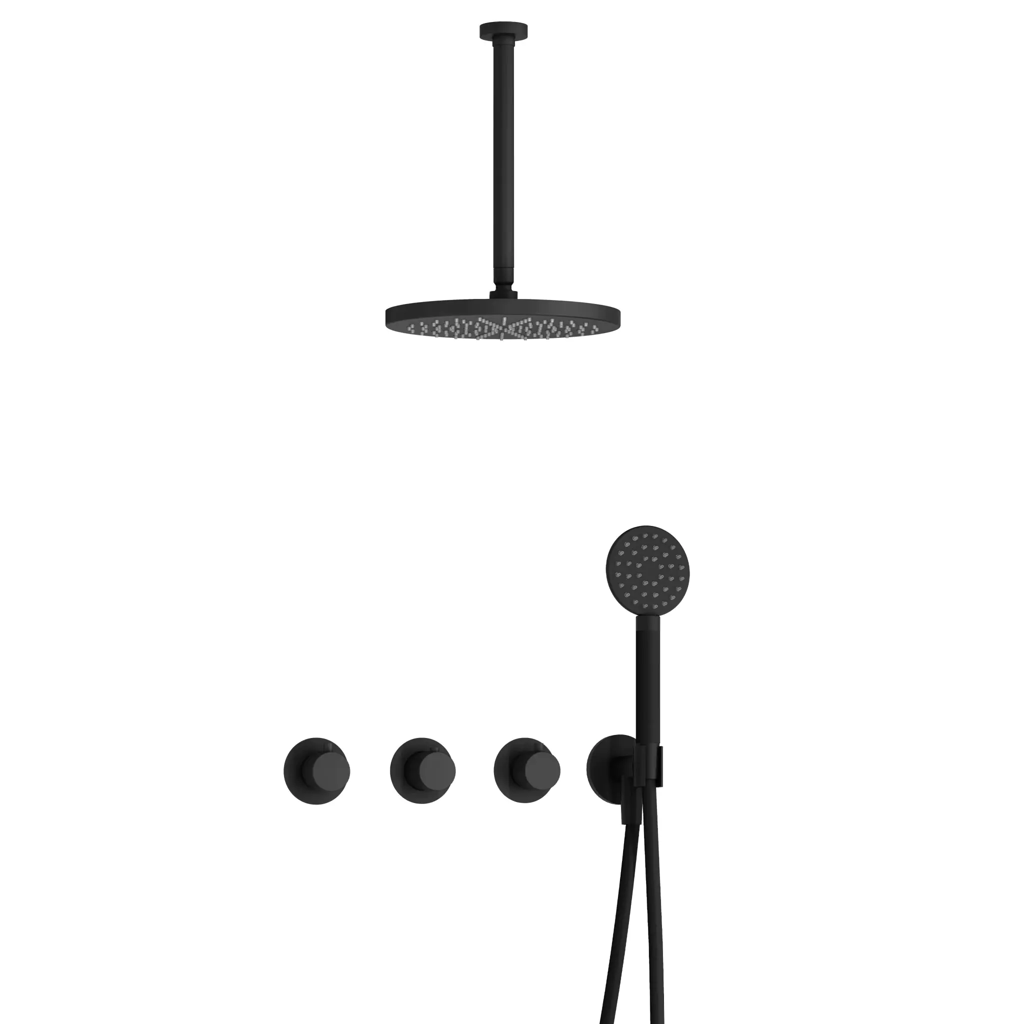 Deze complete regendoucheset van Hotbath uit de serie Cobber X kunt u precies samenstellen zoals u dat wenst. Het afbouwdeel is voorzien van 3 draaiknoppen: een voor de watertemperatuur en een om te bepalen of het water uit de hoofddouche of uit de handdouche te laten stromen. Iedere set wordt geleverd met de gehele inbouwbox en externe schakelaars. De set is verkrijgbaar in verschillende kleuren. Deze set is voorzien van een plafondbuis 30 cm, hoofddouche 30 cm en een ronde handdouche. Let op: De hoofddouches met een diameter 20 cm hebben minimaal een CW3 ketel nodig om dit systeem zo goed mogelijk te laten werken. Voor hoofddouches met een diameter van 25 cm of groter, geldt een CW4 systeem of hoger.