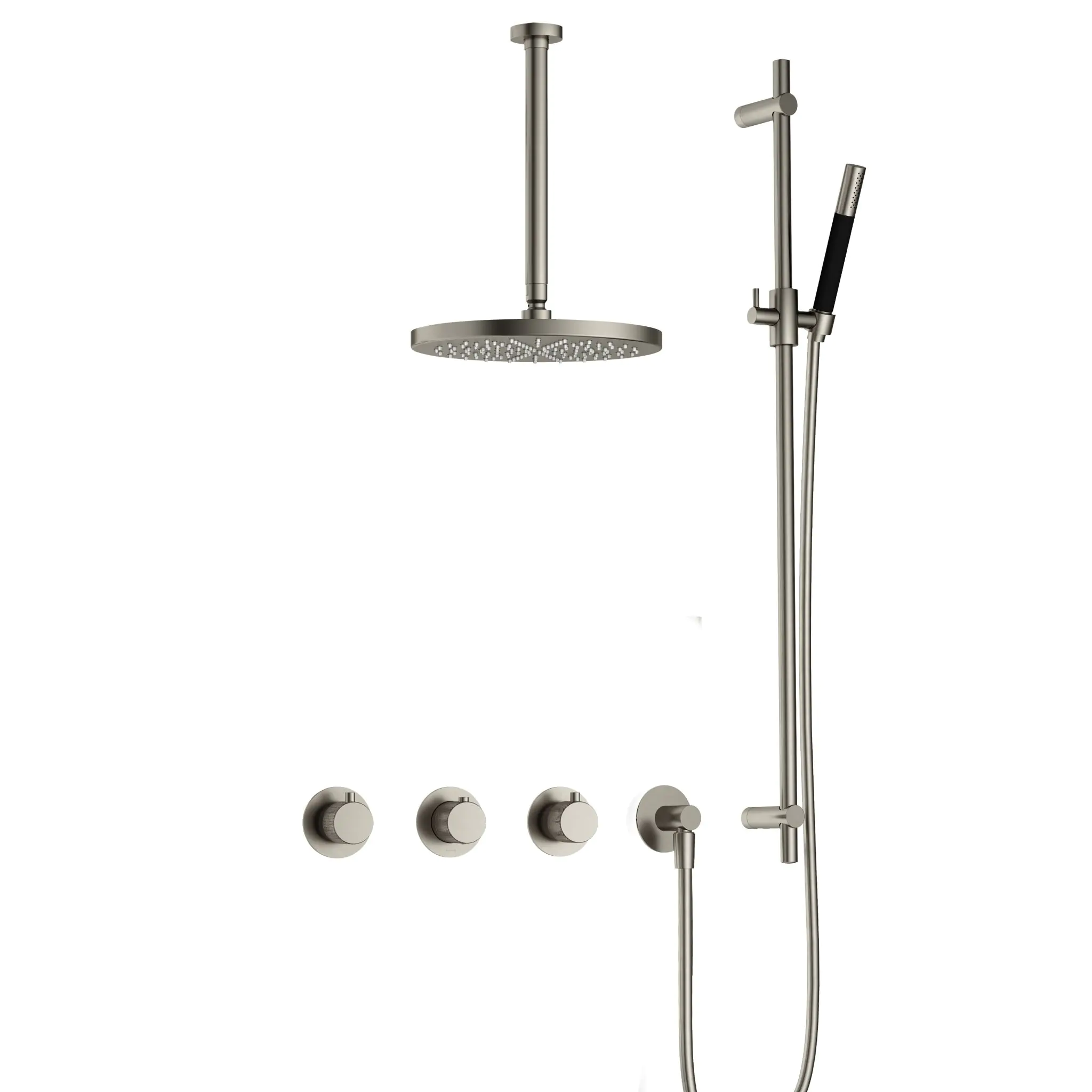 Deze complete regendoucheset van Hotbath uit de serie Cobber X kunt u precies samenstellen zoals u dat wenst. Het afbouwdeel is voorzien van 3 draaiknoppen: een voor de watertemperatuur en een om te bepalen of het water uit de hoofddouche of uit de handdouche te laten stromen. Iedere set wordt geleverd met de gehele inbouwbox en externe schakelaars. De set is verkrijgbaar in verschillende kleuren. Deze set is voorzien van een plafondbuis 30 cm, hoofddouche 30 cm en een glijstang met staafhanddouche. Let op: De hoofddouches met een diameter 20 cm hebben minimaal een CW3 ketel nodig om dit systeem zo goed mogelijk te laten werken. Voor hoofddouches met een diameter van 25 cm of groter, geldt een CW4 systeem of hoger.