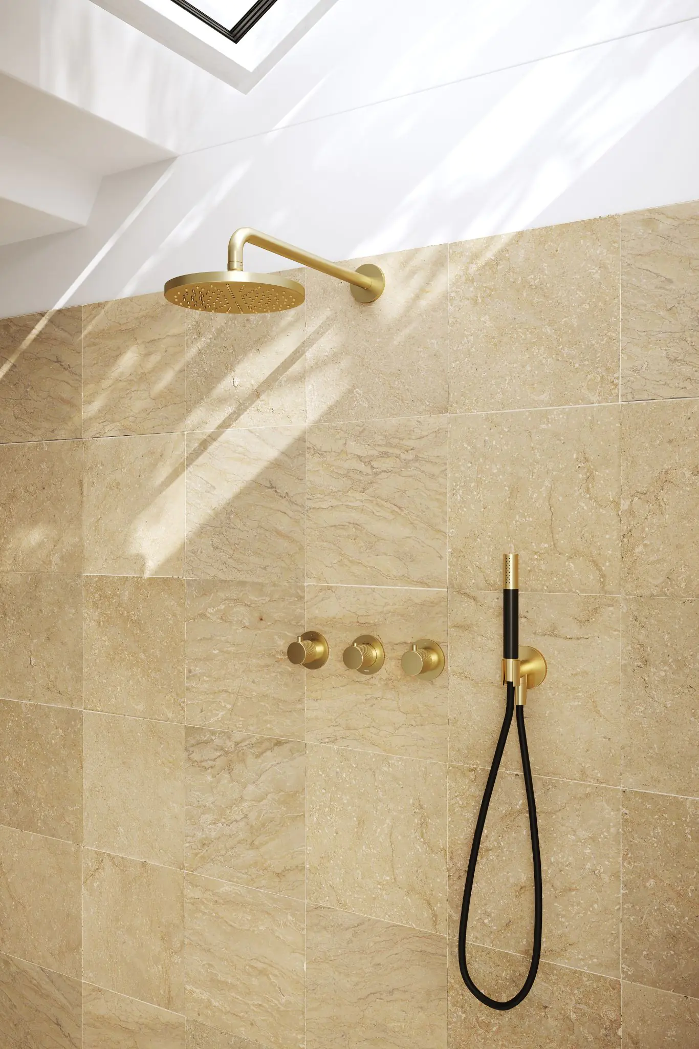Deze complete regendoucheset van Hotbath uit de serie Cobber X kunt u precies samenstellen zoals u dat wenst. Het afbouwdeel is voorzien van 3 draaiknoppen: een voor de watertemperatuur en een om te bepalen of het water uit de hoofddouche of uit de handdouche te laten stromen. Iedere set wordt geleverd met de gehele inbouwbox en externe schakelaars. De set is verkrijgbaar in verschillende kleuren. Deze set is voorzien van een wandarm 38,5 cm, hoofddouche 20 cm en een staafhanddouche. Let op: De hoofddouches met een diameter 20 cm hebben minimaal een CW3 ketel nodig om dit systeem zo goed mogelijk te laten werken. Voor hoofddouches met een diameter van 25 cm of groter, geldt een CW4 systeem of hoger.
