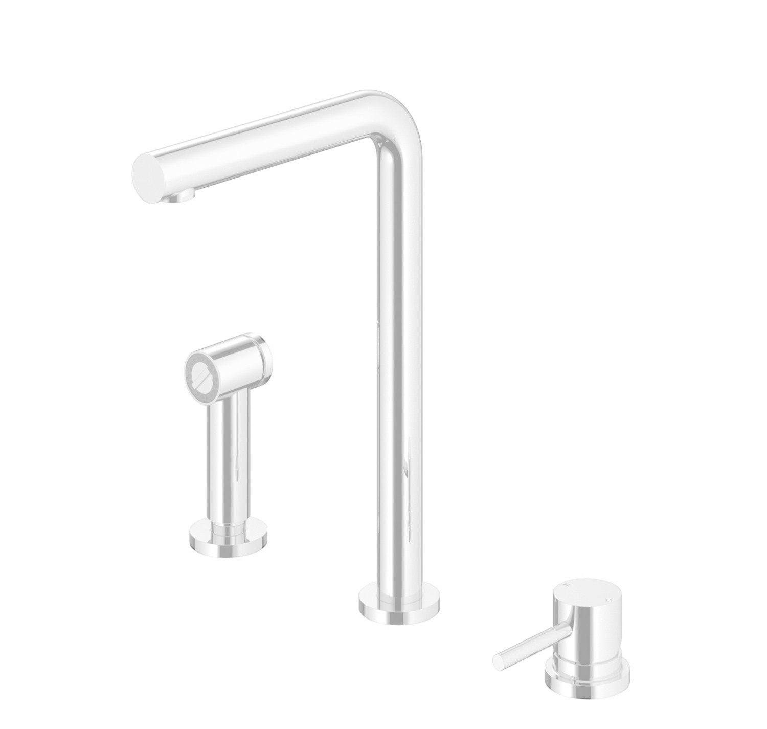 Hotbath Fellow Keukenmengkraan 3 Gats Met Handdouche Mat Wit