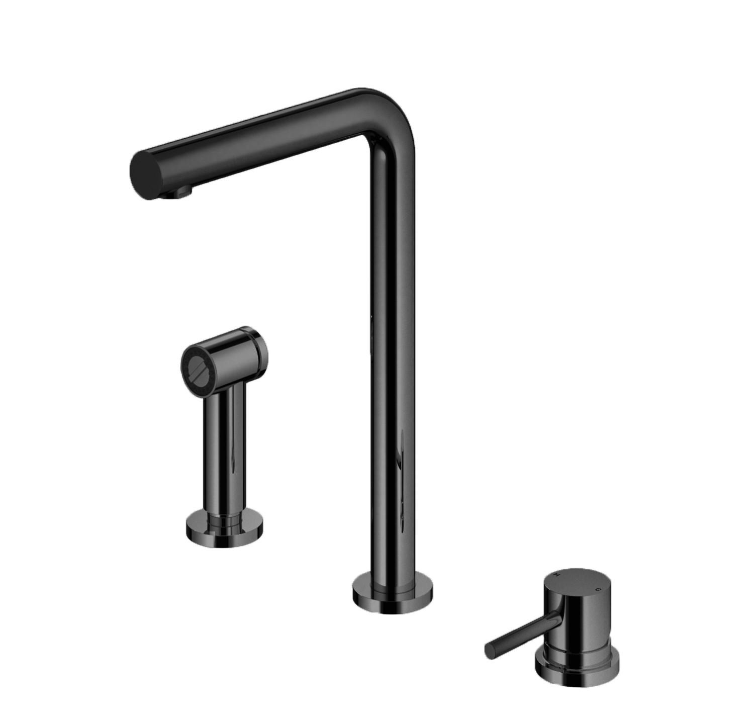 Hotbath Fellow Keukenmengkraan 3 Gats Met Handdouche Zwart Chroom