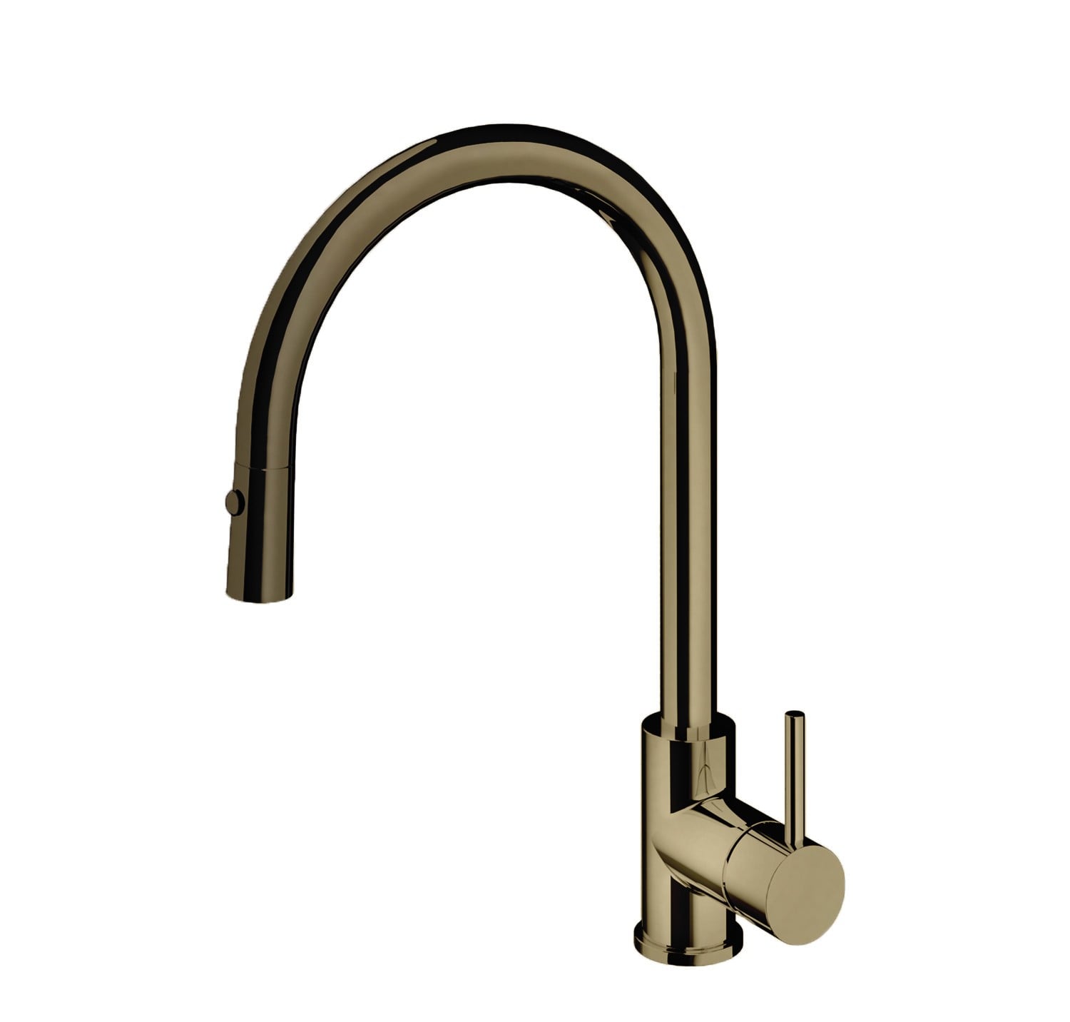 Hotbath Fellow Keukenmengkraan Met Uittrekbare Handdouche Gepolijst Messing - Living Colours