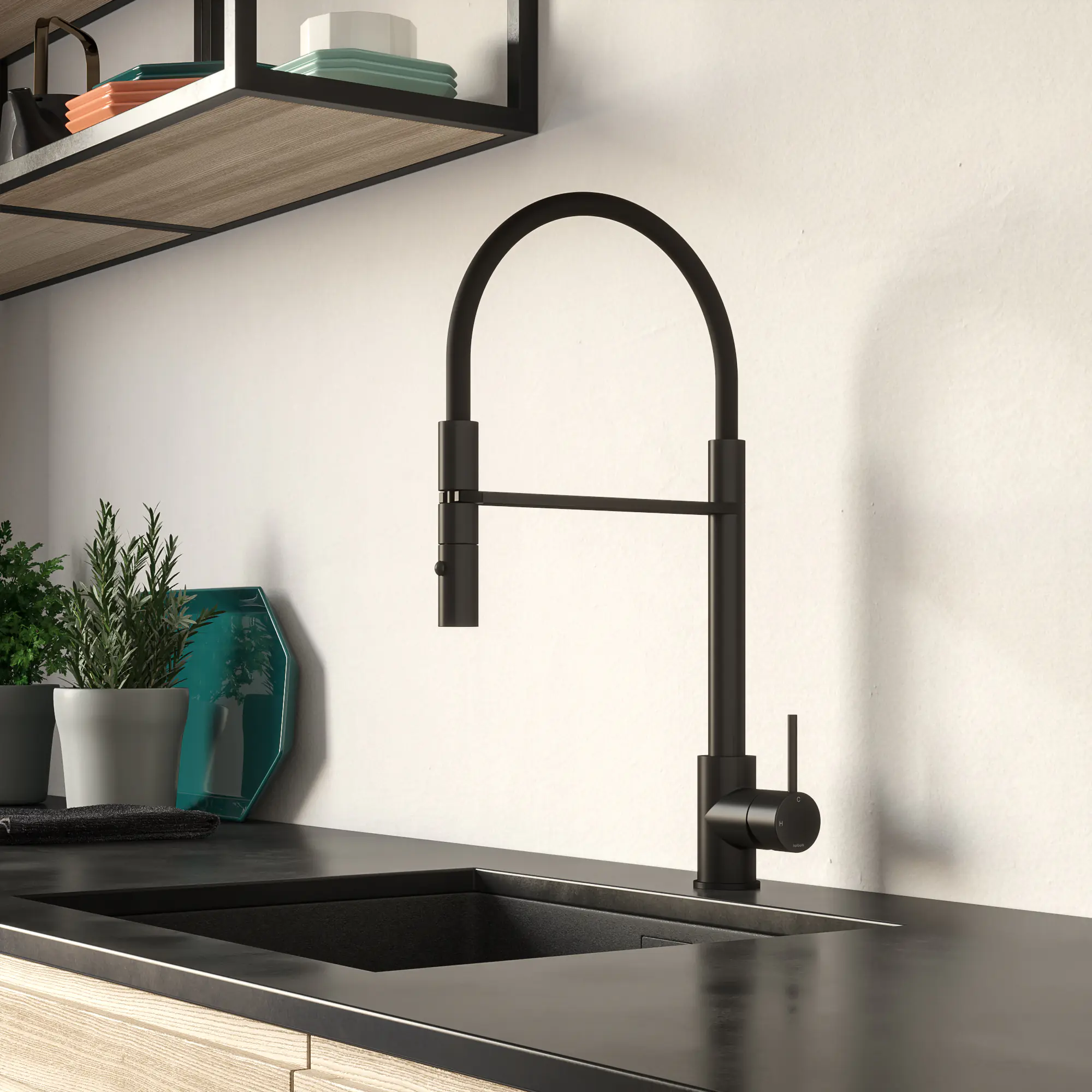 De Fellow keukenmengkraan van her merk Hotbath Fellow is super handig in de keuken. Door de Pulldown functie zijn de etensresten makkelijk aftespoelen zonder te veel gedoe. Een kraan met een draaibare uitloop is ideaal voor ieder aanrecht. Ook vult u met deze draaibare kraan uw dubbele vaat eenvoudig. De kraan heeft een prachtig modern design en tegelijkertijd een een uitstekende ergonomische vormgeving. Bij deze keukenkraan bedien je de hendel om zo het warme en koude leidingwater te mengen. Het mengen doe je dus handmatig waardoor je zelf de temperatuur van het water kan aanpassen. Deze 1 greeps keukenkraan is gemakkelijk te bedienen met 1 hendel. Dit houdt in dat je de hendel op 2 manieren kan draaien. Naar links of rechts draaien geeft dan warmer of kouder water, en door de hendel de andere kant op te bedienen om de kraan harder en zachter zetten. De kraan heeft een keramisch binnenwerk, dit houdt de hendel jarenlang soepel in zijn beweging om water door te laten en de kraan goed te sluiten.