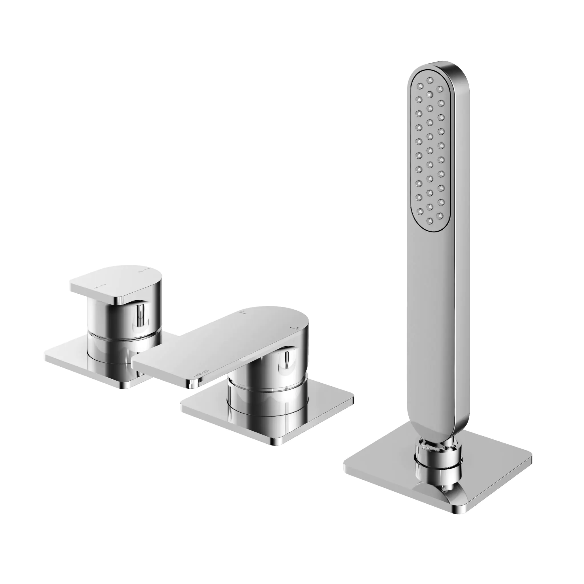 Deze badrandkraan van Hotbath Gal is een ingebouwd mengkraan. De kraan bevat een handdouche, een omstelknop en een mengkraan. Net zoals de rest van de Gal serie, is dit een strakke en toch elegante toevoeging aan uw badkamer. De draadaansluiting is 1/2". De afzonderlijke delen moeten minimaal 11 cm van elkaar geplaatst worden, maar kunnen ook verder van elkaar geplaatst worden. Zo kunt de kraan plaatsen zoals u dat wil. De handdouche geeft maximaal 7,2 liter water per minuut. Inclusief inbouw gedeelte.