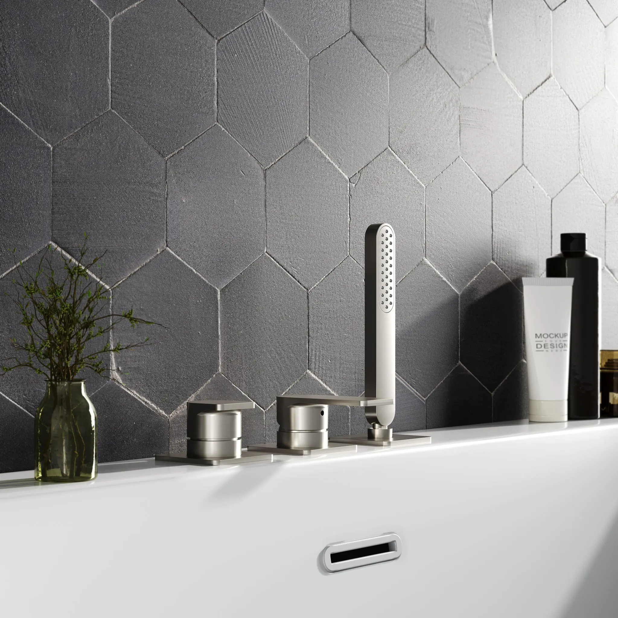 Deze badrandkraan van Hotbath Gal is een ingebouwd mengkraan. De kraan bevat een handdouche, een omstelknop en een mengkraan. Net zoals de rest van de Gal serie, is dit een strakke en toch elegante toevoeging aan uw badkamer. De draadaansluiting is 1/2". De afzonderlijke delen moeten minimaal 11 cm van elkaar geplaatst worden, maar kunnen ook verder van elkaar geplaatst worden. Zo kunt de kraan plaatsen zoals u dat wil. De handdouche geeft maximaal 7,2 liter water per minuut. Inclusief inbouw gedeelte.