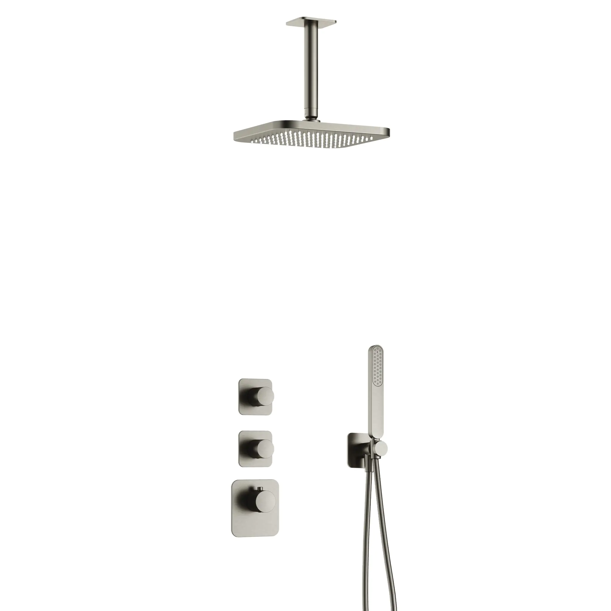 Deze complete regendoucheset van Hotbath Gal kunt u precies samenstellen zoals u dat wenst. Deze set is kenmerkend voor de ingebouwde thermostaat met 2 stopkranen. Hierdoor kunt u de watertoevoer naar de de hoofddouche en handdouche afzonderlijk regelen. Iedere set wordt geleverd met de gehele inbouwbox en externe schakelaars. De set is verkrijgbaar in verschillende kleuren. Deze set is voorzien van een plafondbuis 15 cm, hoofddouche 22x22 cm en een staafhanddouche. Let op: De hoofddouches met een diameter 20 cm hebben minimaal een CW3 ketel nodig om dit systeem zo goed mogelijk te laten werken. Voor hoofddouches met een diameter van 25 cm of groter, geldt een CW4 systeem of hoger.