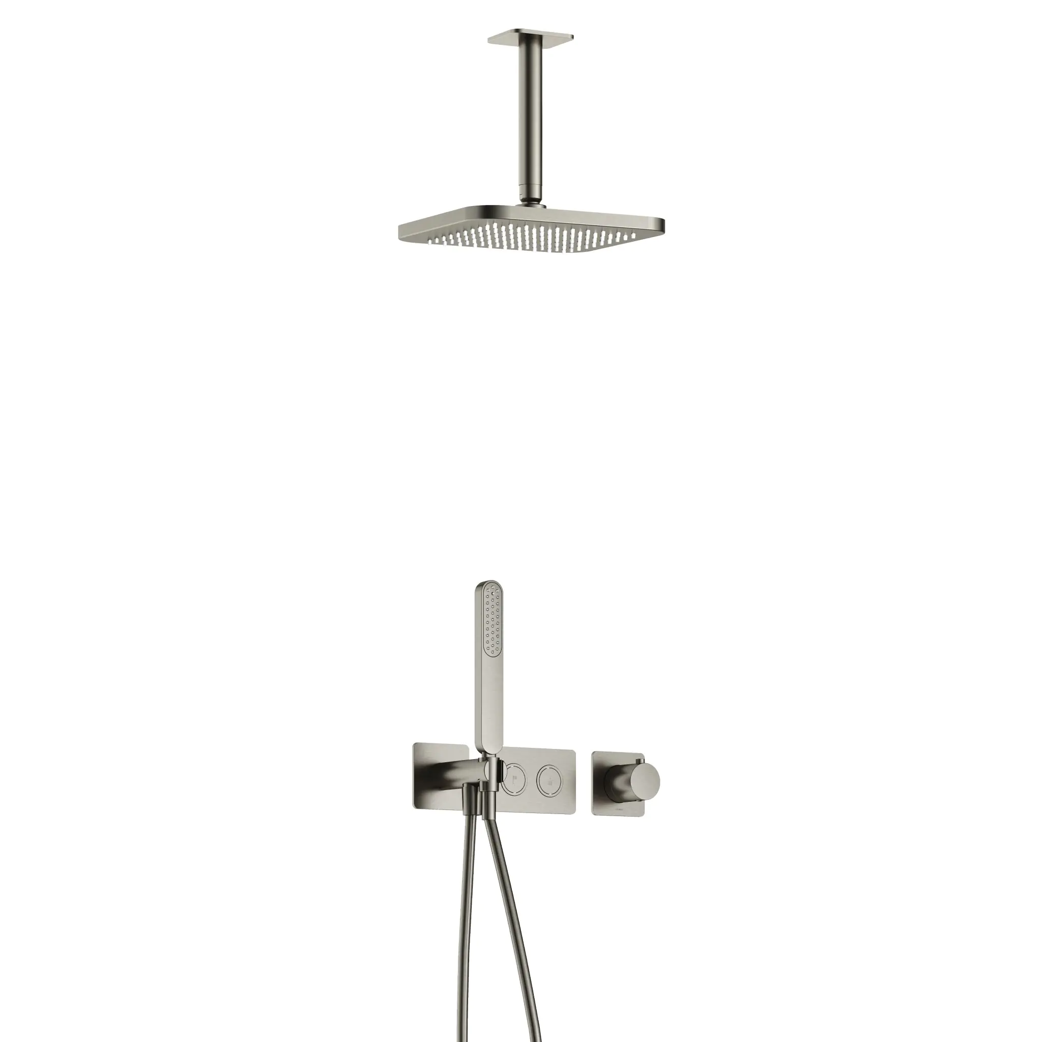 Hotbath Gal Inbouw Regendoucheset Met 2 Pushbuttons, Plafondbuis 15cm, Hoofddouche 22x22cm En Staafhanddouche Geborsteld Nikkel PVD