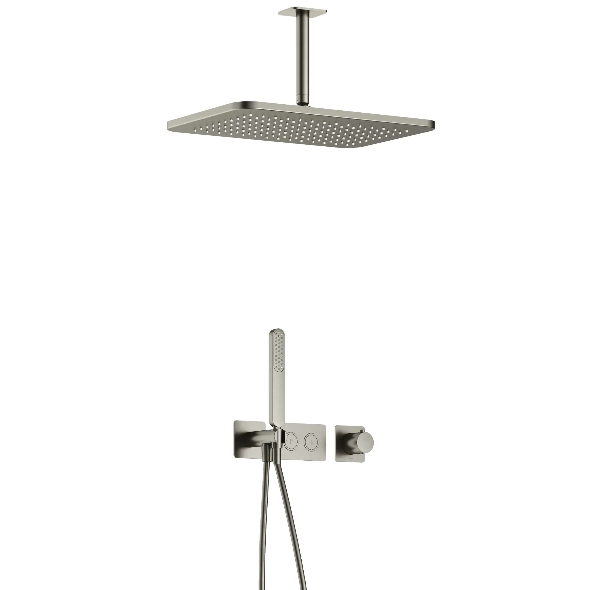 Hotbath Gal Inbouw Regendoucheset Met 2 Pushbuttons, Plafondbuis 15cm, Hoofddouche 27x40cm En Staafhanddouche Geborsteld Nikkel PVD