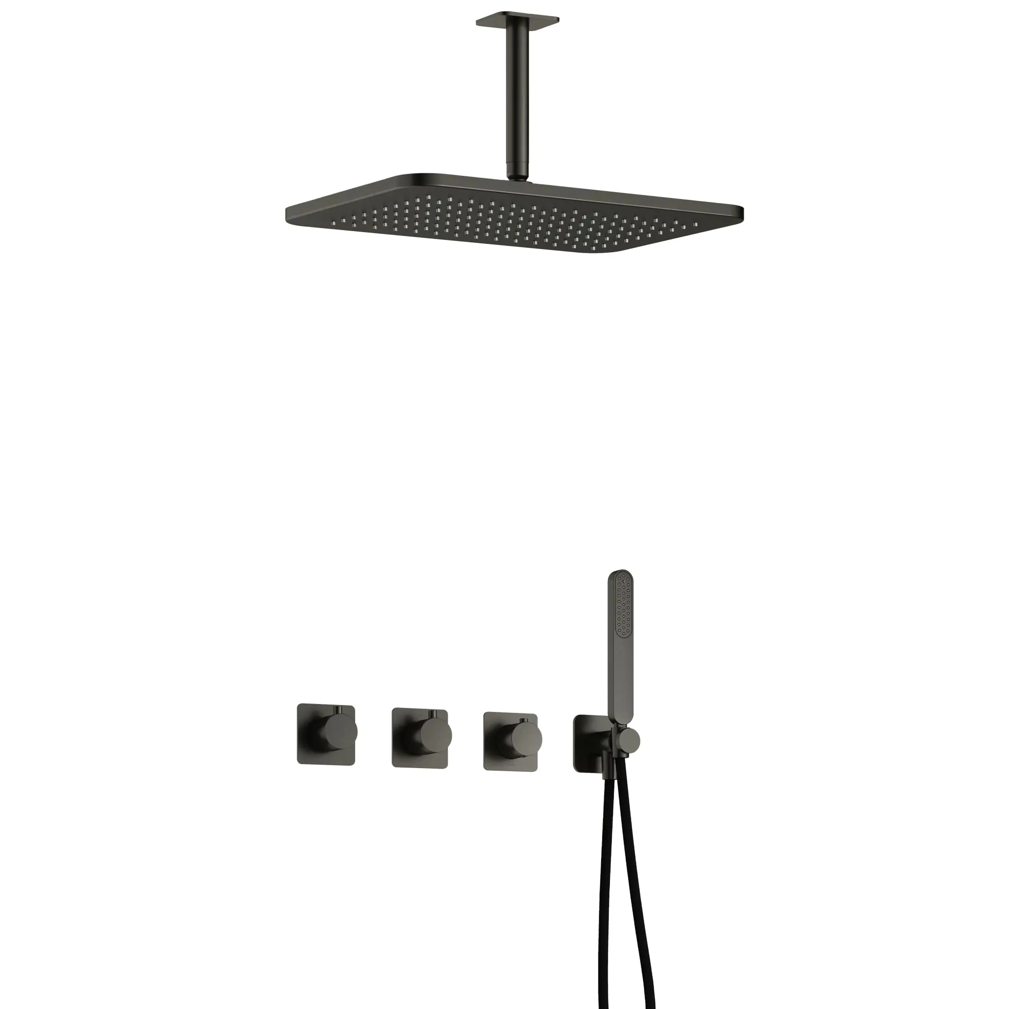 Hotbath Gal Inbouw Regendoucheset Met 2 Stopkranen, Plafondbuis 15cm, Hoofddouche 27x40cm En Staafhanddouche Geborsteld Gunmetal PVD