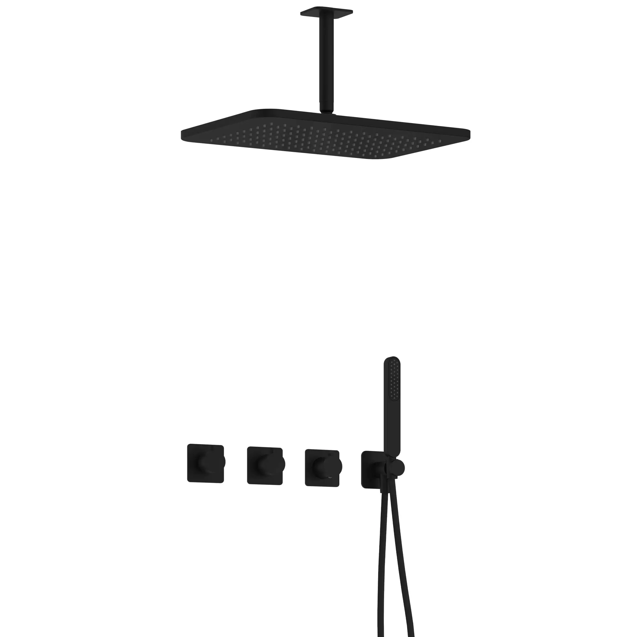 Hotbath Gal Inbouw Regendoucheset Met 2 Stopkranen, Plafondbuis 15cm, Hoofddouche 27x40cm En Staafhanddouche Mat Zwart