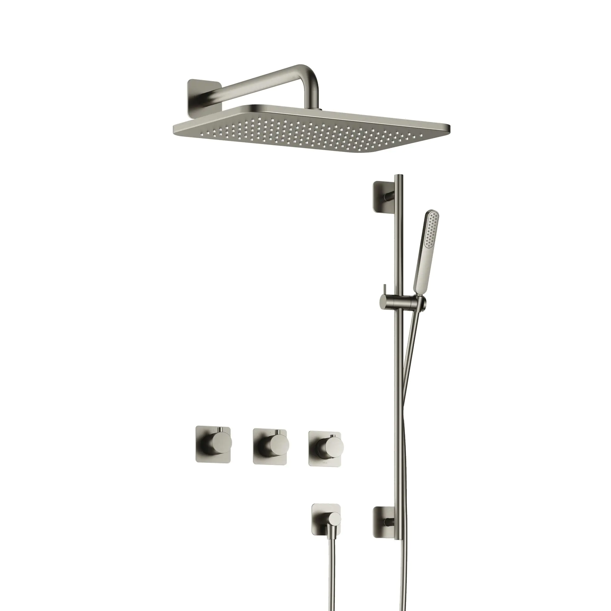 Deze complete regendoucheset van Hotbath Gal kunt u precies samenstellen zoals u dat wenst. De Hotbath Gal complete thermostatische douche inbouwset wordt geleverd met twee stopkranen, waarmee je de watertoevoer gemakkelijk kunt regelen. Zo kun je bijvoorbeeld de watertoevoer naar de handdouche afsluiten terwijl je de hoofddouche gebruikt. Iedere set wordt geleverd met de gehele inbouwbox en externe schakelaars. De set is verkrijgbaar in verschillende kleuren. Deze set is voorzien van een wandarm 35 cm, hoofddouche 27x40 cm en een glijstang met staafhanddouche. Let op: De hoofddouches met een diameter 20 cm hebben minimaal een CW3 ketel nodig om dit systeem zo goed mogelijk te laten werken. Voor hoofddouches met een diameter van 25 cm of groter, geldt een CW4 systeem of hoger.