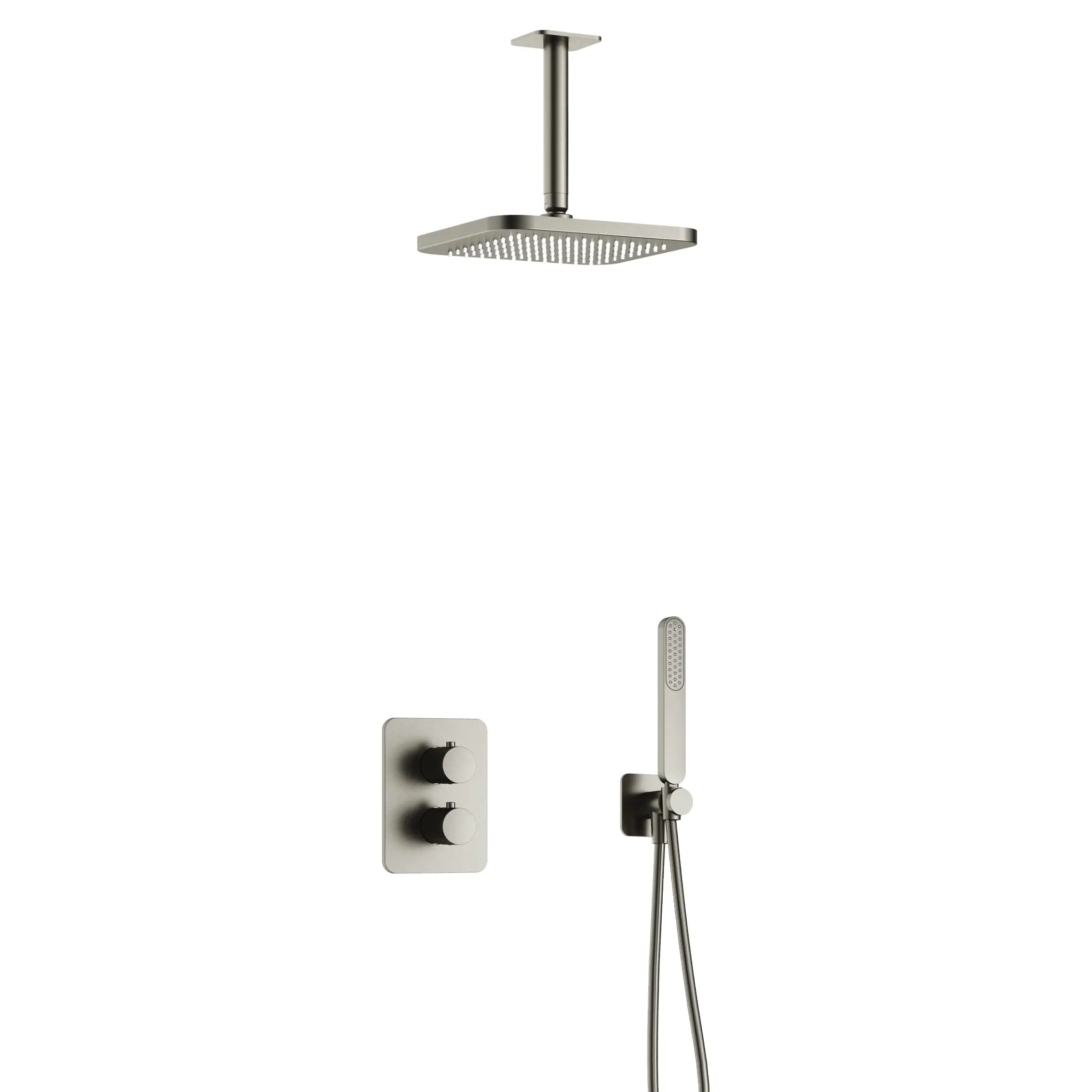 Hotbath Gal Inbouw Regendoucheset Met 2-Weg-Omstel, Plafondbuis 15cm, Hoofddouche 22x22cm En Staafhanddouche Geborsteld Nikkel PVD