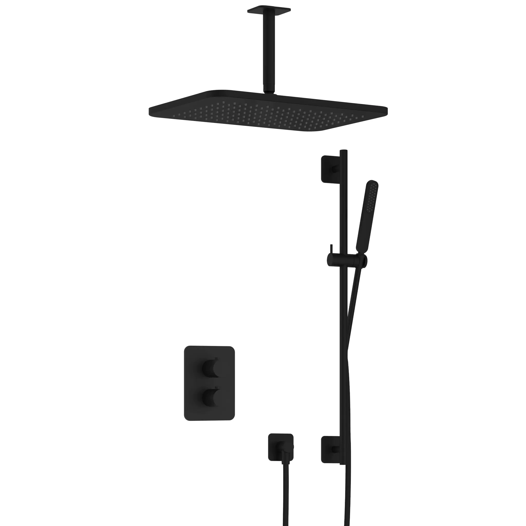 Deze complete regendoucheset van Hotbath Gal kunt u precies samenstellen zoals u dat wenst. Deze set is kenmerkend voor de ingebouwde thermostaat met een 2-weg-stop-omstel. Iedere set wordt geleverd met de gehele inbouwbox en externe schakelaars. De set is verkrijgbaar in verschillende kleuren. Deze set is voorzien van een plafondbuis 15 cm, hoofddouche 27x40 cm en een glijstang met staafhanddouche. Let op: De hoofddouches met een diameter 20 cm hebben minimaal een CW3 ketel nodig om dit systeem zo goed mogelijk te laten werken. Voor hoofddouches met een diameter van 25 cm of groter, geldt een CW4 systeem of hoger.