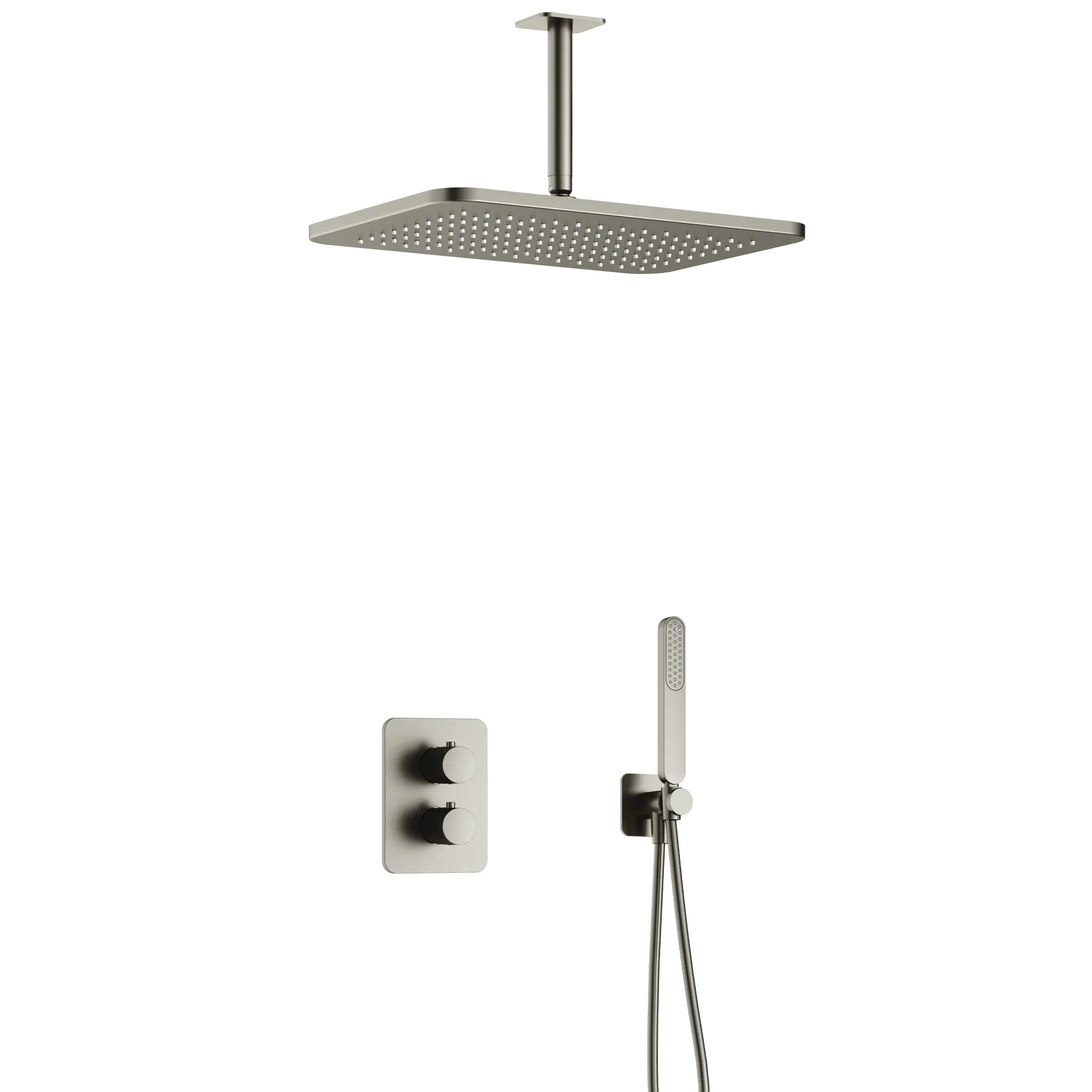 Hotbath Gal Inbouw Regendoucheset Met 2-Weg-Omstel, Plafondbuis 15cm, Hoofddouche 27x40cm En Staafhanddouche Geborsteld Nikkel PVD