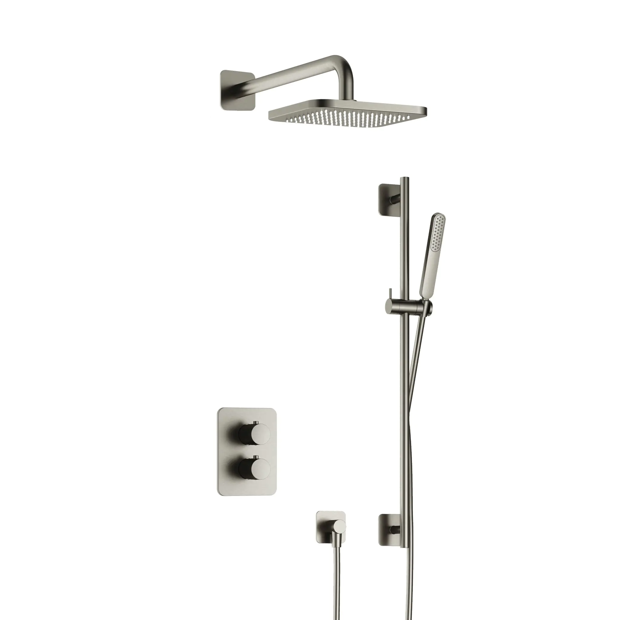 Hotbath Gal Inbouw Regendoucheset Met 2-Weg-Omstel, Wandarm, Hoofddouche 22x22cm En Glijstangset Geborsteld Nikkel PVD