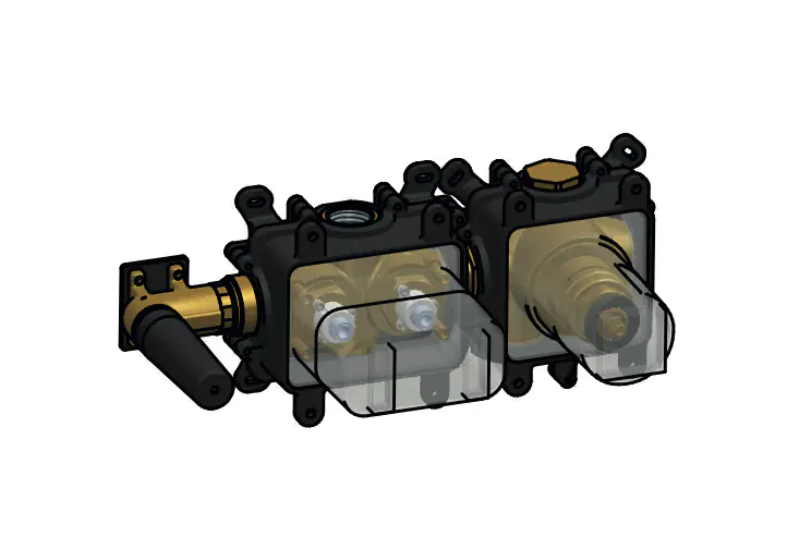 Dit inbouwdeel is geschikt voor de Hotbath Gal serie. Speciaal gemaakt voor de pushbuttons van de inbouwkraan. Met dit inbouwdeel is het mogelijk om een thermostaat en 2 pushbuttons te controleren. De handdouchetoevoer geeft 6.8 liter per minuut.