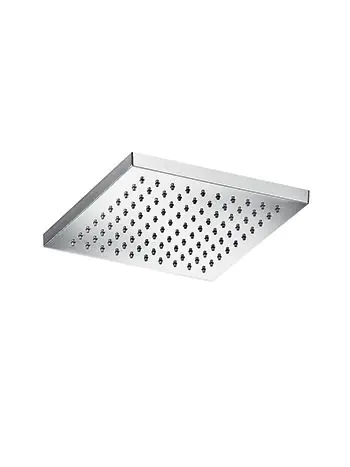 Een moderne hoofddouche vierkant zonder plafond/ wandarm. De hoofddouche is vierkant 30 bij 30 cm en is van ABS kunststof. ABS kunststof is een vormvast materiaal, licht maar hard en slagvast. Door zijn model ideaal geschikt in een strakke moderne badkamer.