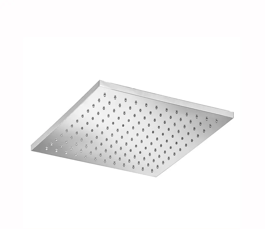 Een moderne hoofddouche vierkant zonder plafond/ wandarm. De hoofddouche is vierkant 30 bij 30 cm en is van ABS kunststof. ABS kunststof is een vormvast materiaal, licht maar hard en slagvast. Door zijn model ideaal geschikt in een strakke moderne badkamer.