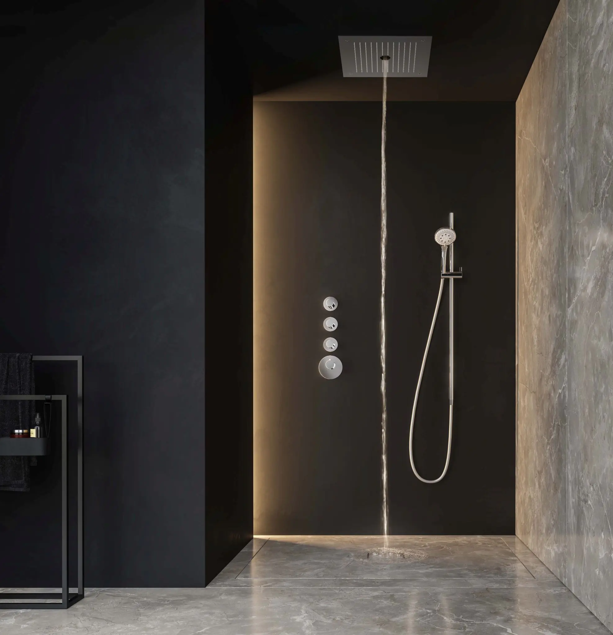 Deze complete regendoucheset van Hotbath Mate kunt u precies samenstellen zoals u dat wenst. Het afbouwdeel is voorzien van 4 draaiknoppen. Iedere set wordt geleverd met de gehele inbouwbox en externe schakelaars. De set is verkrijgbaar in verschillende kleuren. Deze set is voorzien van een inbouw hoofddouche 33x38 cm en een glijstang met 3 standen handdouche. Let op: De hoofddouches met een diameter 20 cm hebben minimaal een CW3 ketel nodig om dit systeem zo goed mogelijk te laten werken. Voor hoofddouches met een diameter van 25 cm of groter, geldt een CW4 systeem of hoger.