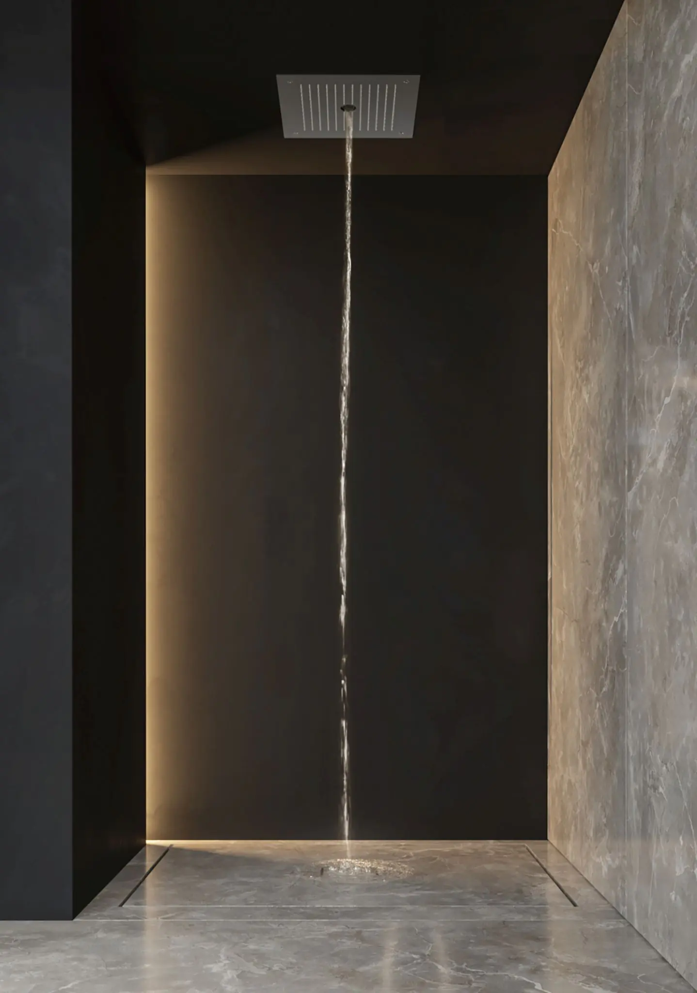Luxe hoofddouche met stortstand en pilaarstraal. Wie wil dat nou niet. Voor elk gewenste douchebeurt een andere douche. Heerlijk van schouder tot schouder worden voorzien van water. Het is een inbouw model inclusief frame.