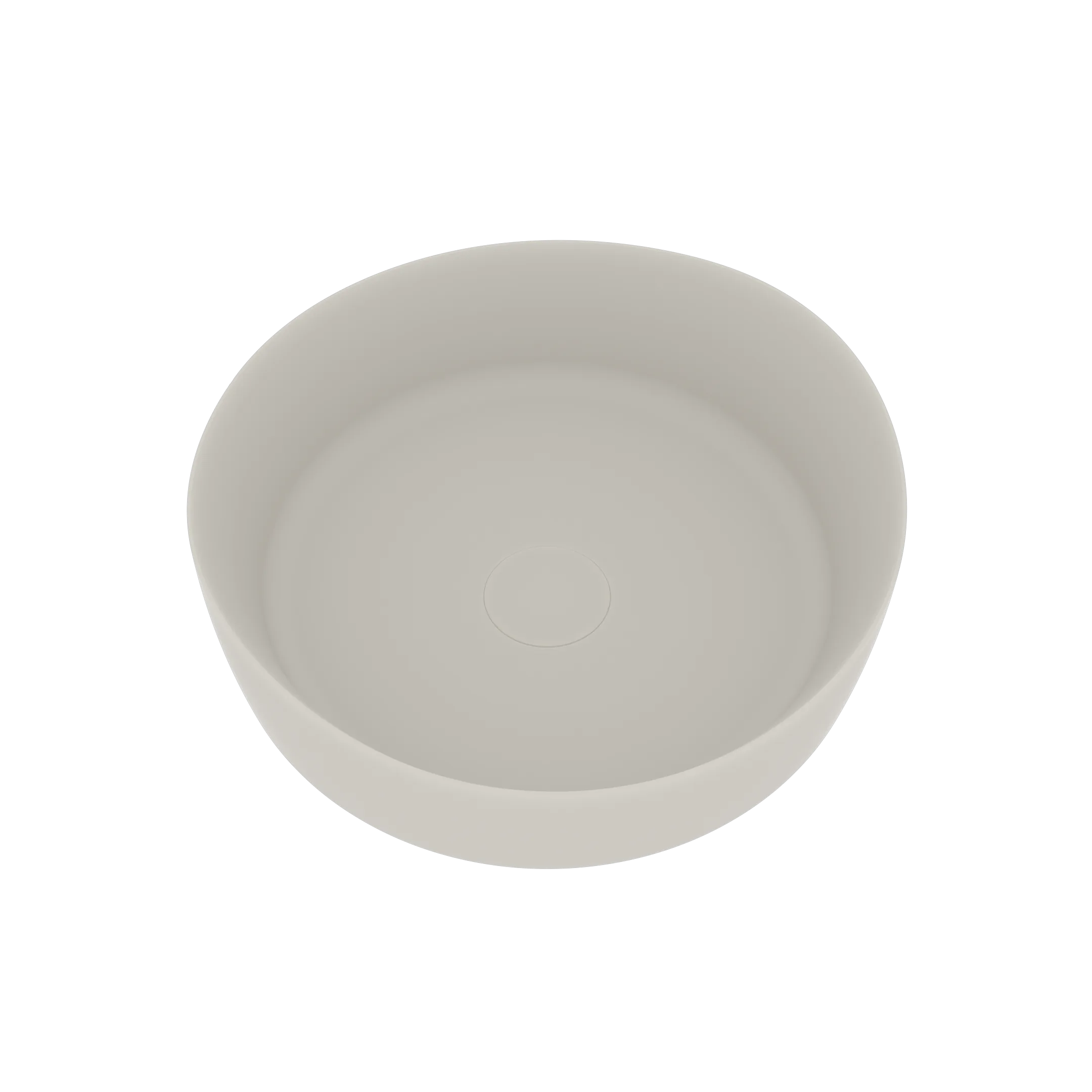 De vrijstaande ovale wasbak met het matte, fluweelachtige oppervlak van solid surface zorgt dat de wasbak prettig aanvoelt en makkelijk schoon te maken is.