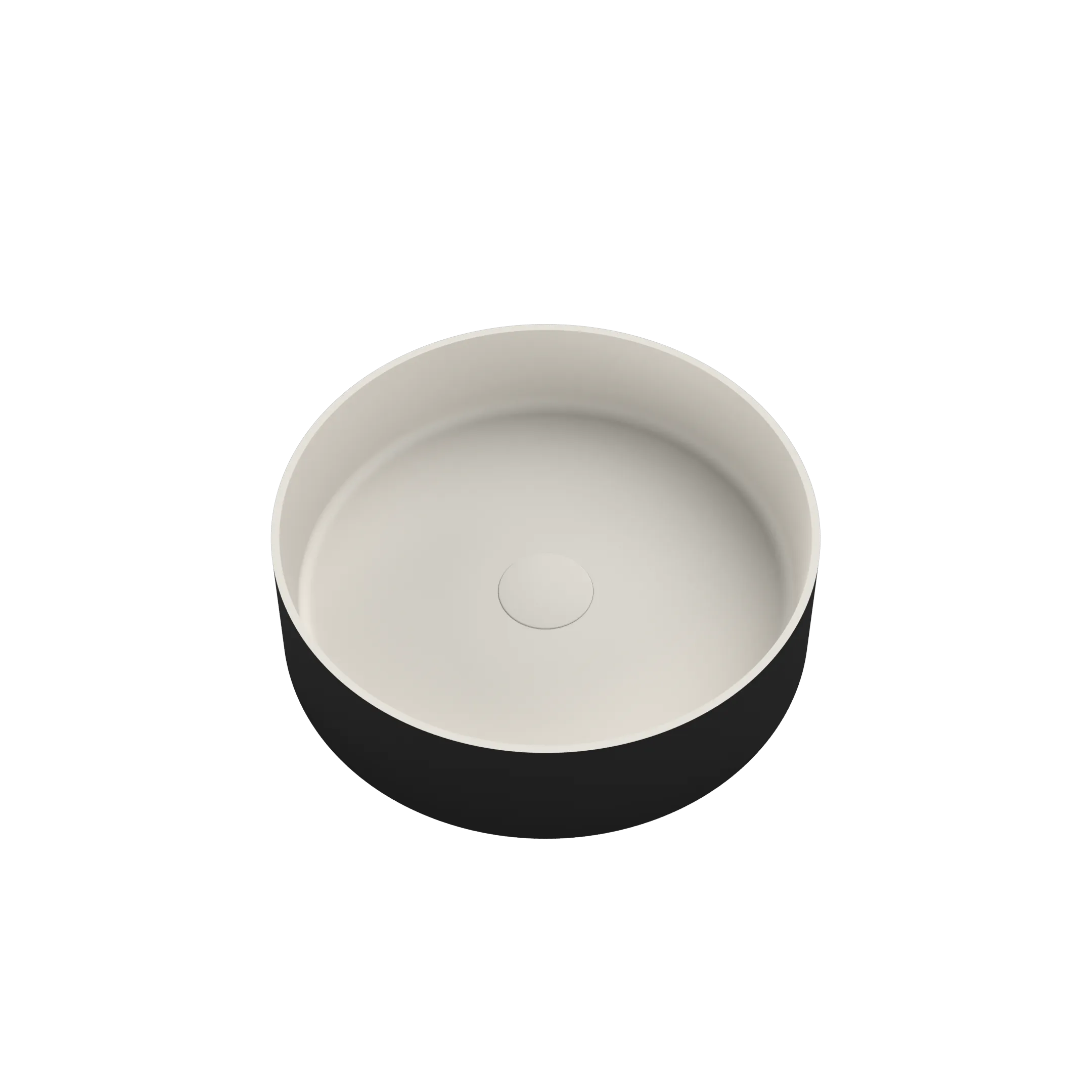 De vrijstaande wasbak in Mat Wit met een dunne rand van 6 mm. De buitenzijde is mat zwart. Het matte, fluweelachtige oppervlak van de wasbak voelt prettig aan en is makkelijk schoon te maken en te onderhouden