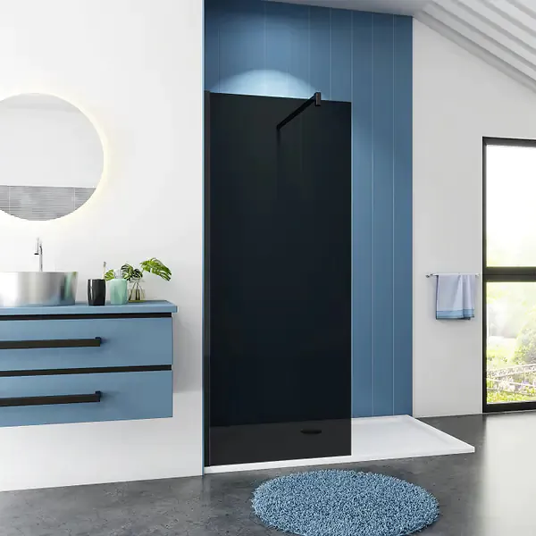 De Inloopdouche Black Dahlia is een opvallende keuze voor de moderne badkamer. Het 8mm dikke rookglas voegt een stijlvolle, donkere tint toe, terwijl het tegelijk een gevoel van privacy creëert. De mat zwarte afwerking geeft het geheel een strak en luxe karakter. De bijgeleverde Douchebak Daisy in wit biedt een tijdloos en duurzaam fundament dat perfect aansluit bij de douche.