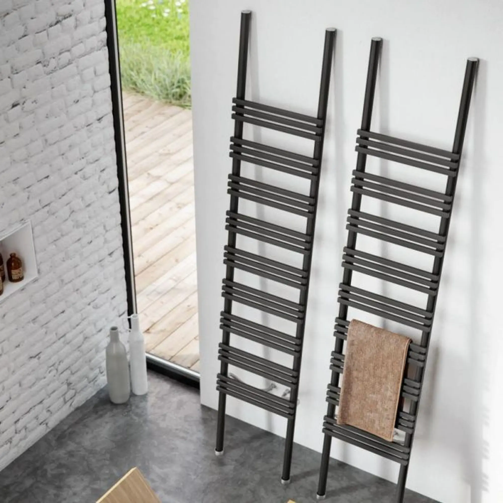 De traditionele ladder van vroeger keert terug als een bijzondere designradiator voor aan de muur. In de ISKOL komen klassieke en moderne elementen samen. Een combinatie van prachtig design, heerlijke warmte en superieure kwaliteit. De radiator staat op de vloer en rust tegen de muur. De groepering van verschillende elementen bij elkaar geeft de ruimte een elegante en warme uitstraling. Zeer stijlvol in zwart of wit maar ook leverbaar in meer dan 200 kleuren, waaronder gladde RAL kleuren en grove structuurlakken. De radiator wordt na een grondige roestwerende voorbehandeling voorzien van een poeder-epoxylaag. Deze radiator is standaard zonder thermostaat. De radiator is in dit geval bedoeld als plaatselijke bijverwarming, een handdoekwarmer of al onderdeel van een centraal geregeld verwarmingssysteem (niet meegeleverd). Optioneel kan er worden gekozen voor een programmeerbare thermostaat. In dat geval is de radiator te gebruiken als hoofdverwarming.
