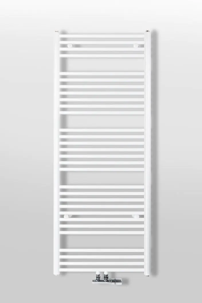 Let op! Houd er rekening mee dat de afmeting mogelijk afwijkt van wat op de afbeelding wordt getoond. De NERA is een fraaie strakke radiator, opgebouwd uit twee verticale ronde collectorbuizen met een diameter van 40mm. Tussen de collectorbuizen zitten rechte horizontale buizen. De horizontale buizen hebben een diameter van 20mm. De NERA is een kwalitatief hoogwaardige radiator die aantrekkelijk geprijsd is. Gemakkelijk te combineren met verschillende soorten aansluitsets en diverse accessoires. Standaard is de NERA voorzien van een 50mm onderaansluiting. Indien de 50mm onderaansluiting niet wordt gebruikt, geeft het onderste element minder warmte af dan de overige elementen. Het ophangmateriaal is van kunststof en wordt samen met de ontluchting meegeleverd. Bij witte radiatoren zijn de consoles ook wit. Bij de gekleurde radiator zijn de consoles verchroomd. De radiator wordt na een grondige roestwerende voorbehandeling voorzien van een poeder-epoxylaag. Deze radiator wordt standaard geleverd met de witte thermostaat EL.BEDIENING.08.